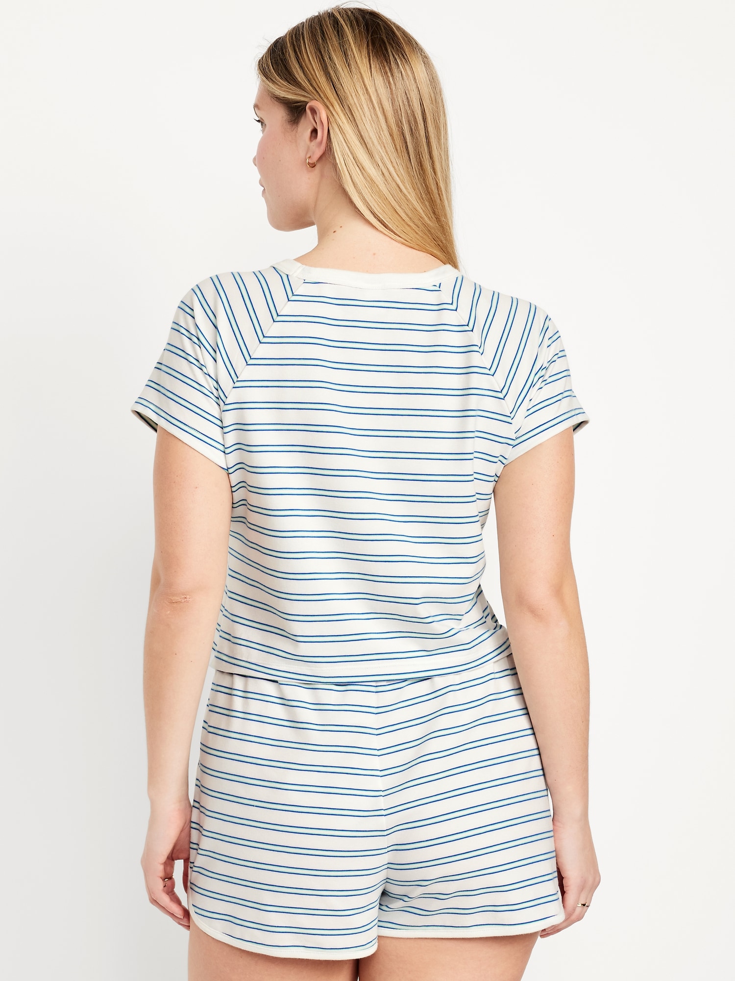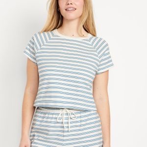 Cropped Jersey Lounge Top: crew neck, short raglan sleeves, print varies, #766783
