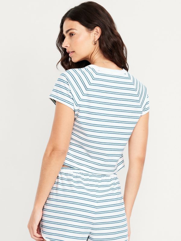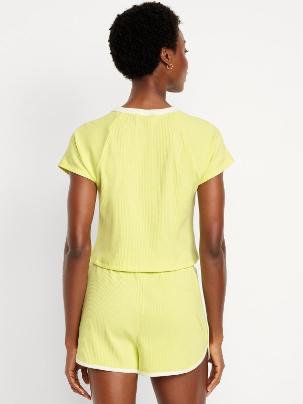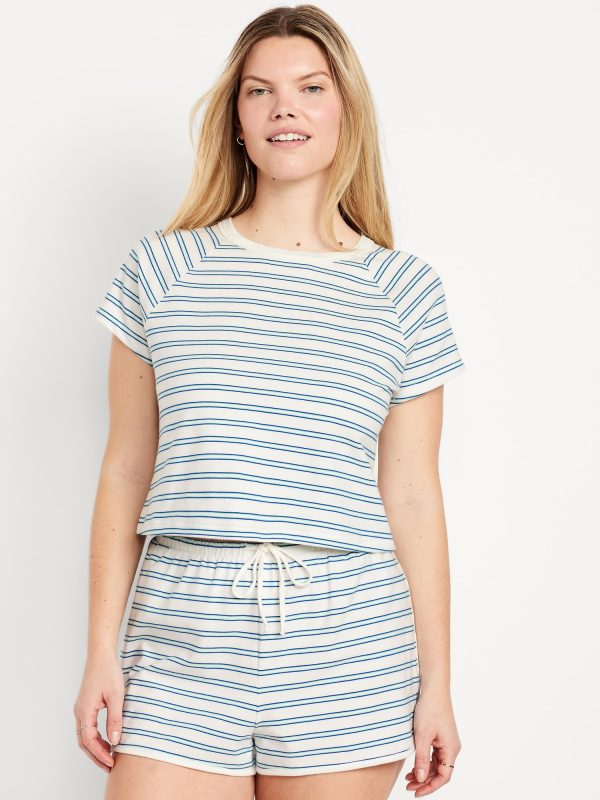 Cropped Jersey Lounge Top: crew neck, short raglan sleeves, print varies, #766783
