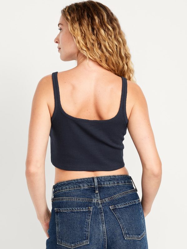 Cropped Pointelle Cami Top: scoop neck, spaghetti straps, #844566