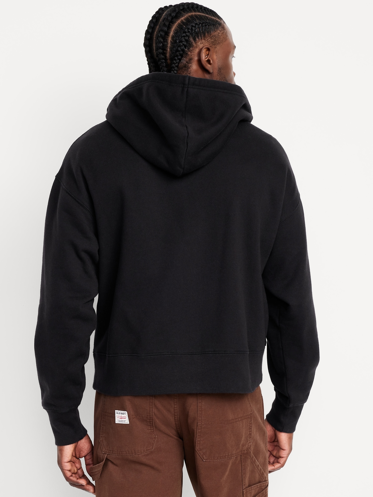 Cropped Rotation Oversized Zip Hoodie: drawstring hood, long drop-shoulder sleeves, full-zip front, hand-warming pockets, rib-knit trim, #828315