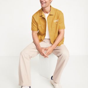 Cropped Utility Pocket Shirt: notched collar, short sleeves, embroidered chest graphic varies, button-patch chest pockets, full-button front, #762369
