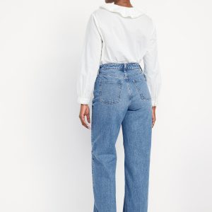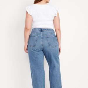 Curvy Extra High-Waisted Cuffed Wide-Leg Jeans: A roomy wide leg with a smaller waist, fuller hips.no-gap extra high waist, zip fly, front scoop pockets, back patch pockets, ripped detail, #855940
