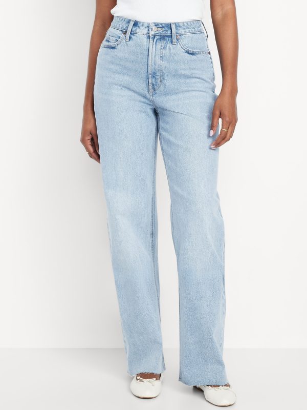 Curvy Extra High-Waisted Cuffed Wide-Leg Jeans: A roomy wide leg with a smaller waist, fuller hips.no-gap extra high waist, zip fly, front scoop pockets, back patch pockets, ripped detail, #855940