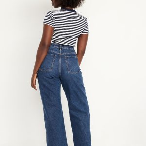 Curvy Extra High-Waisted Wide-Leg Jeans: A roomy wide leg with a smaller waist, fuller hips.no-gap extra high waist, zip fly, front scoop pockets, back patch pockets, ripped detail, #855940