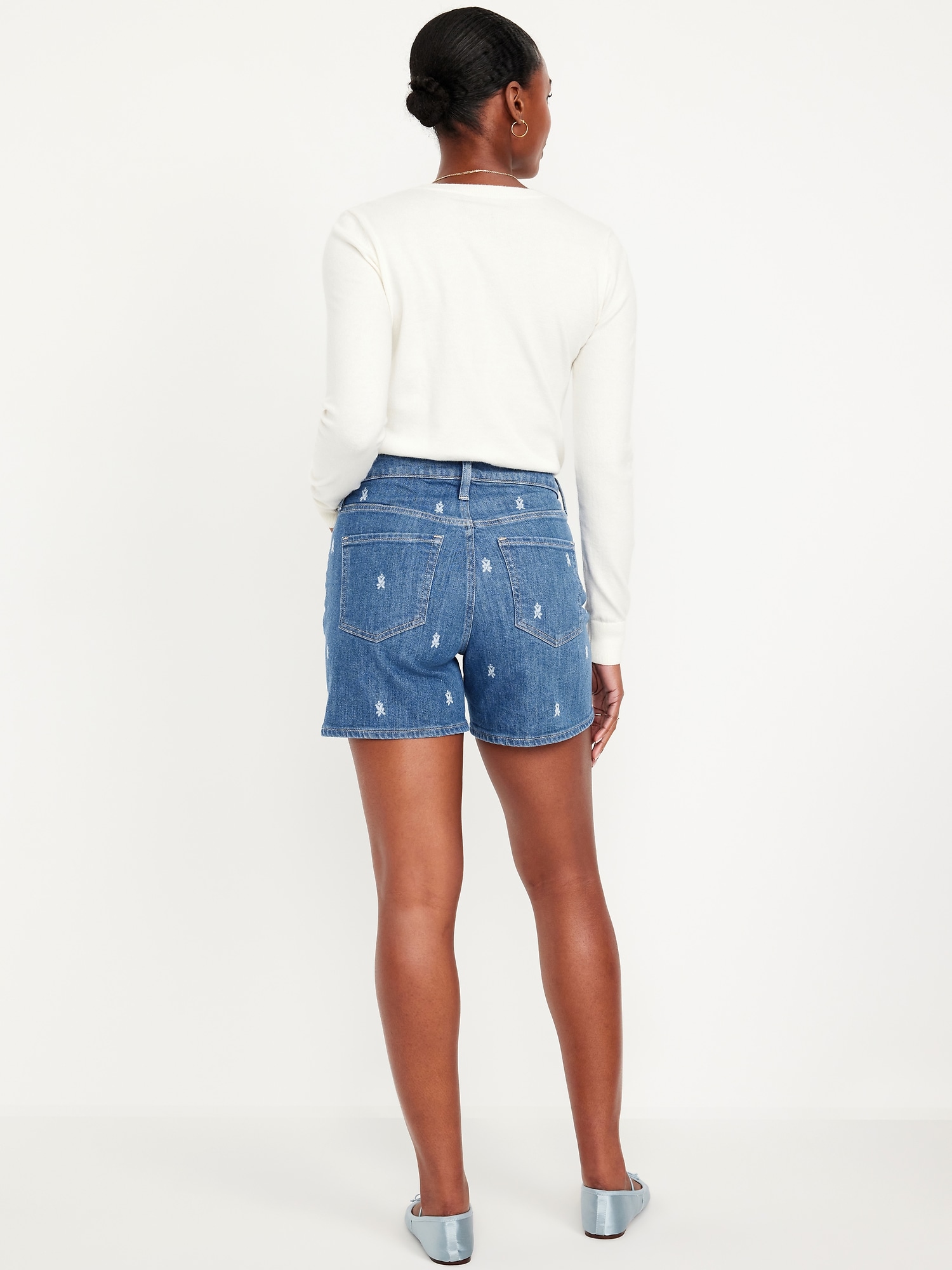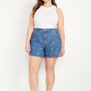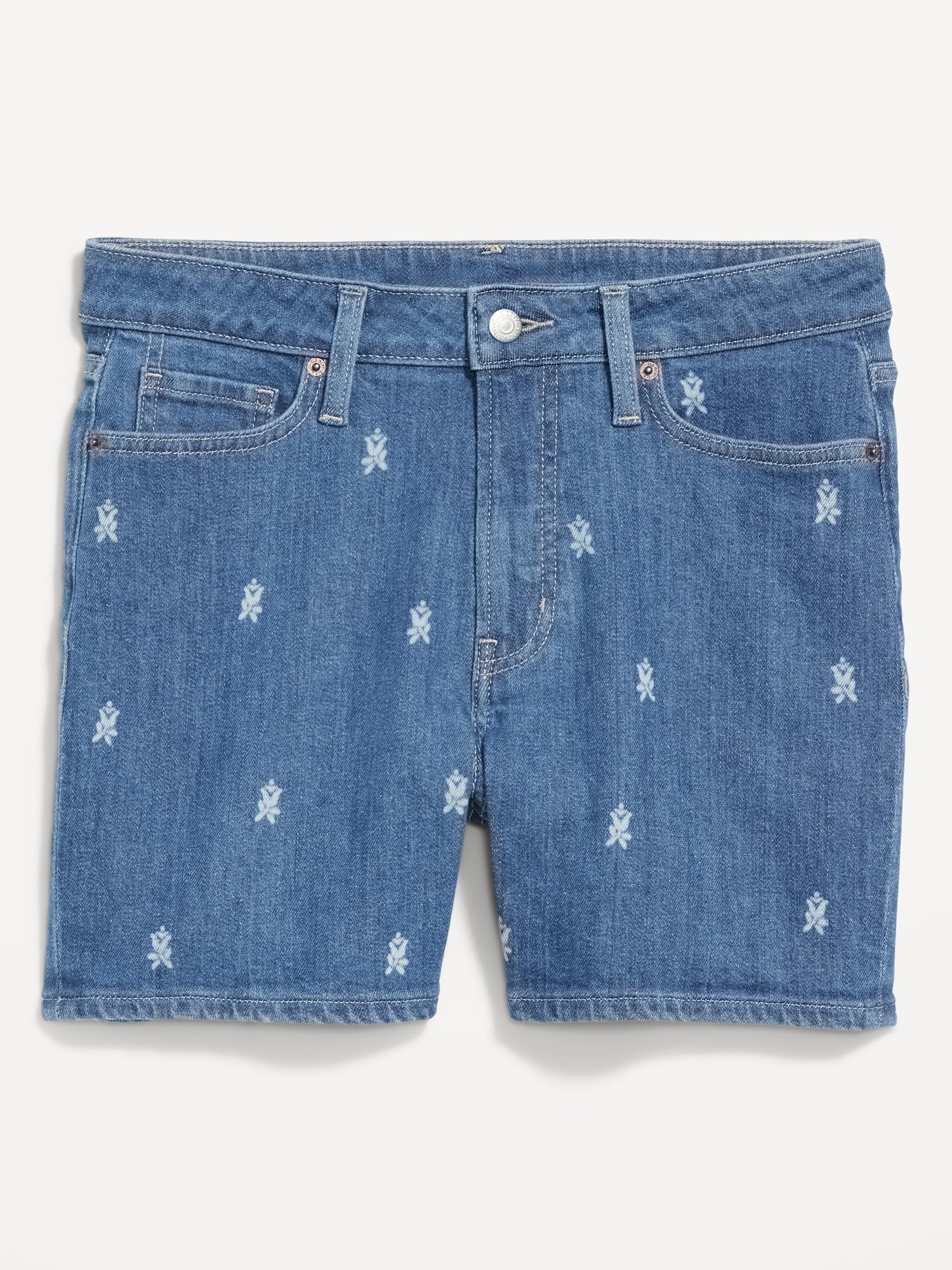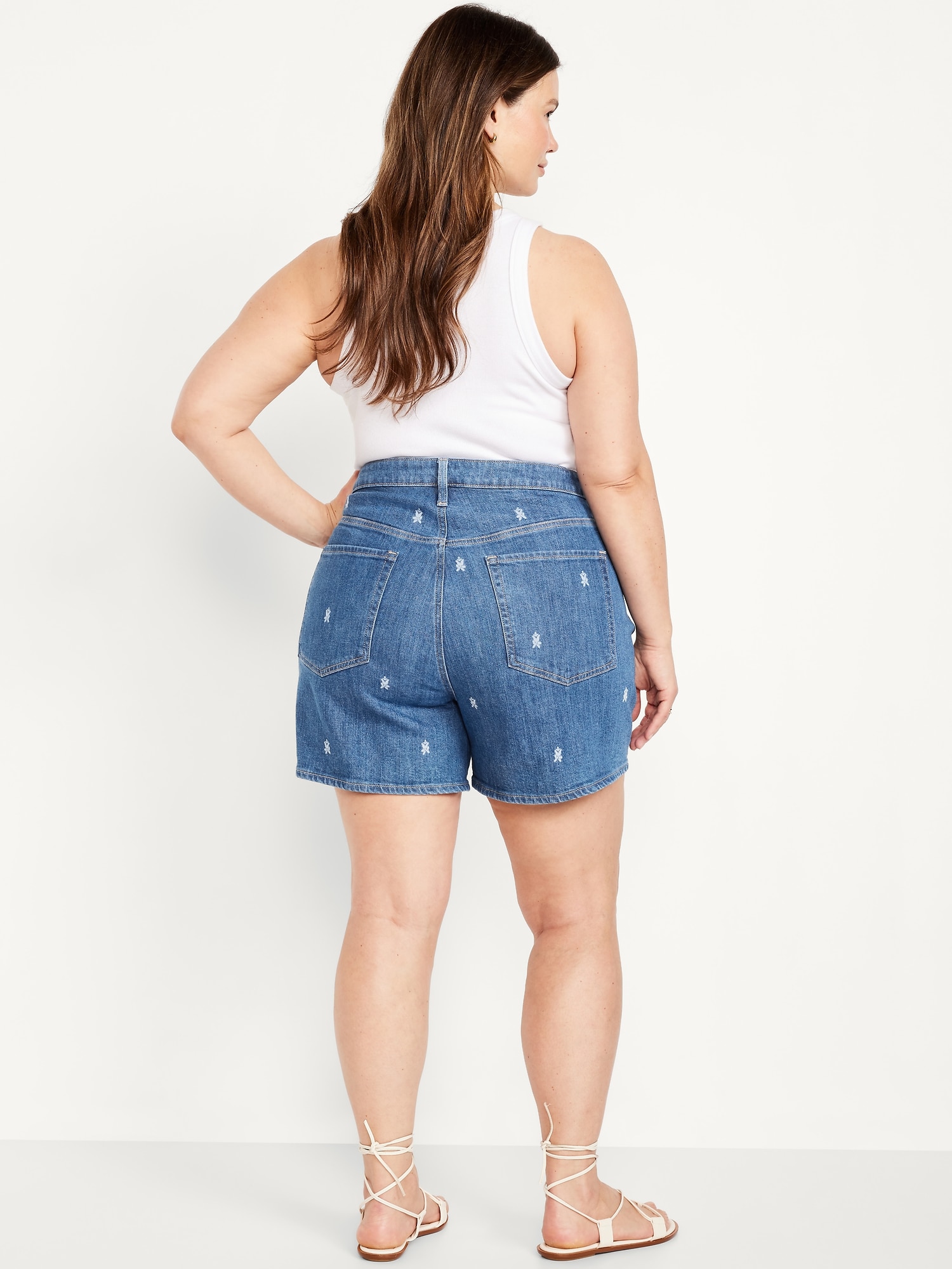 Curvy High-Waisted OG Jean Shorts — 5-inch inseam: Our classic bestseller with fuller hips.no-gap high waist, zip fly, all-over floral print, #695252