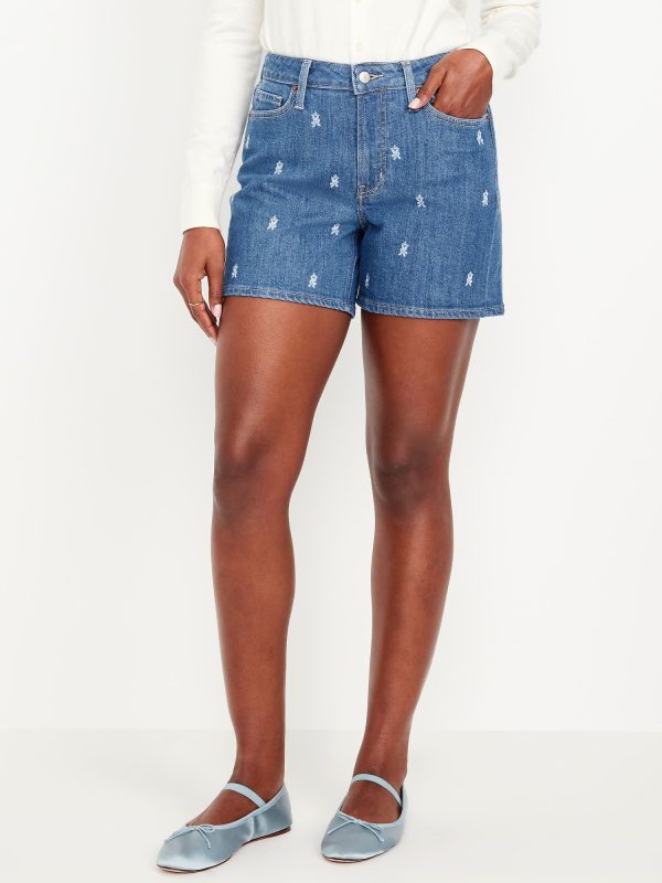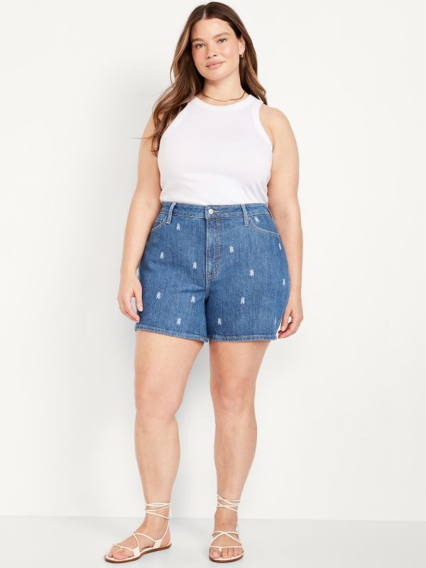 Curvy High-Waisted OG Jean Shorts — 5-inch inseam: Our classic bestseller with fuller hips.no-gap high waist, zip fly, all-over floral print, #695252