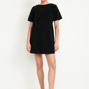 Denim Mini Dress: crew neck, short sleeves, center back zipper, seamed front and back, #798224