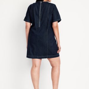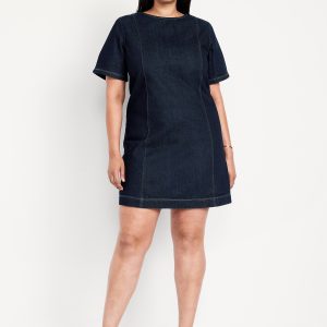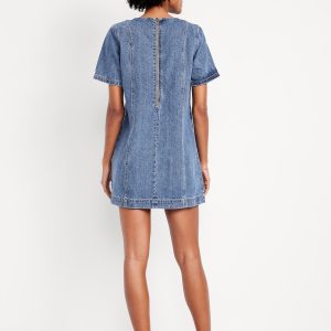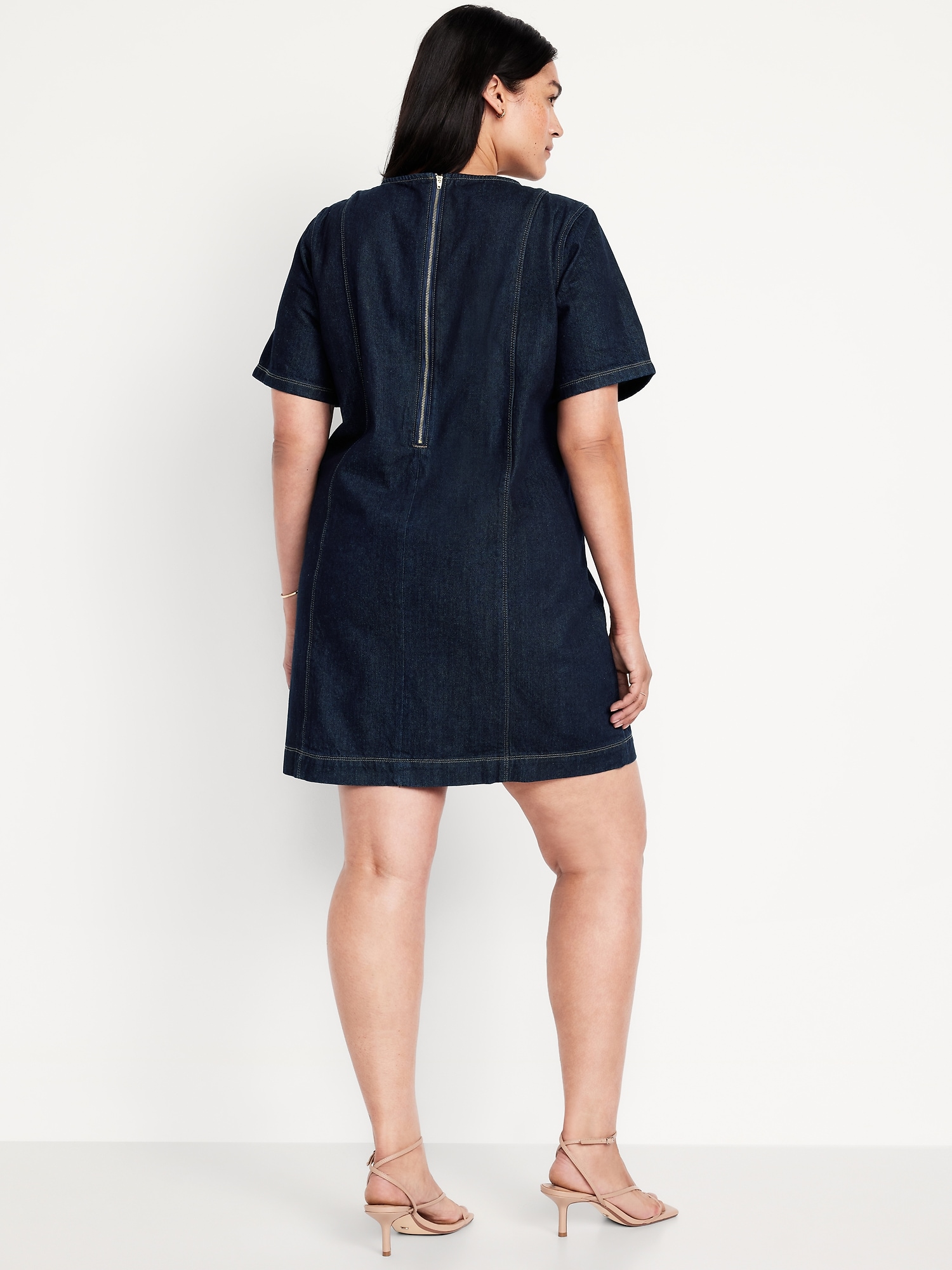 Denim Mini Dress: crew neck, short sleeves, center back zipper, seamed front and back, #798224