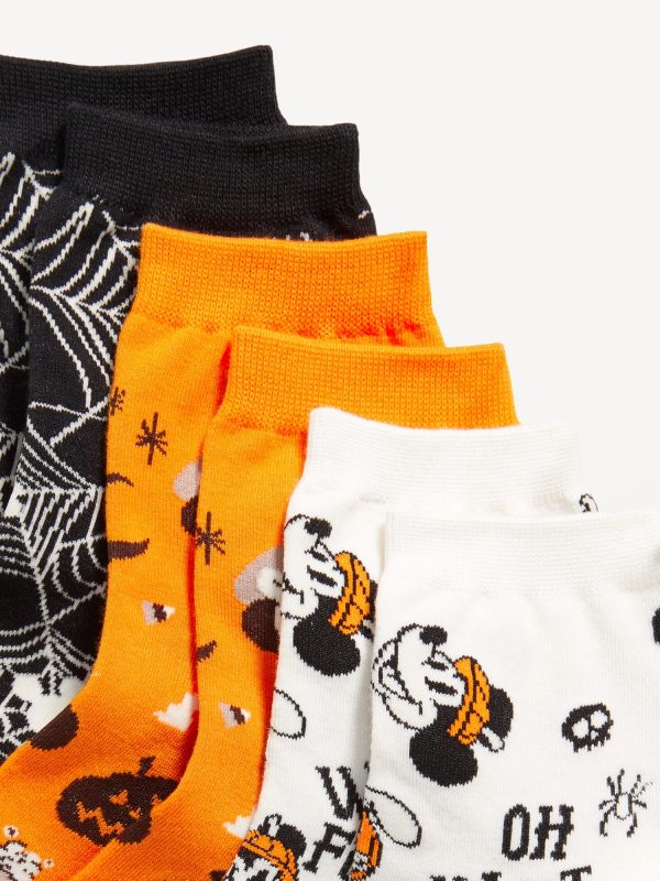 Disney© 3-Pack Novelty Quarter Crew Socks for Women: pack includes 3 pairs of novelty quarter-length crew socks, rib-knit opening, notched seams for comfort, licensed graphics, © Disney, #812477