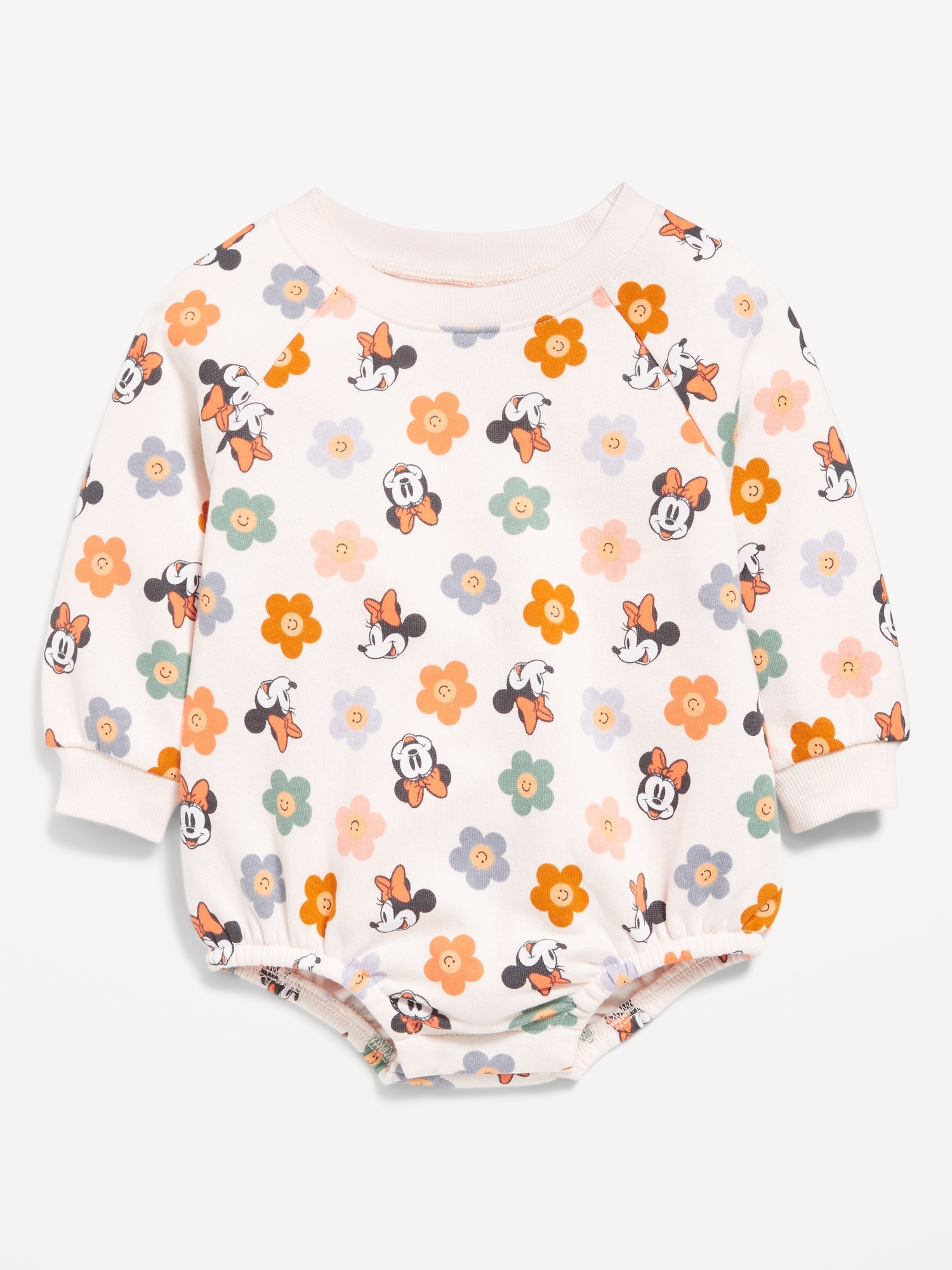 Disney© Fleece One-Piece Romper for Baby: crew neck, long raglan sleeves, elasticized bubble leg openings, hidden snaps along inseam, licensed graphic, © Disney., #802590