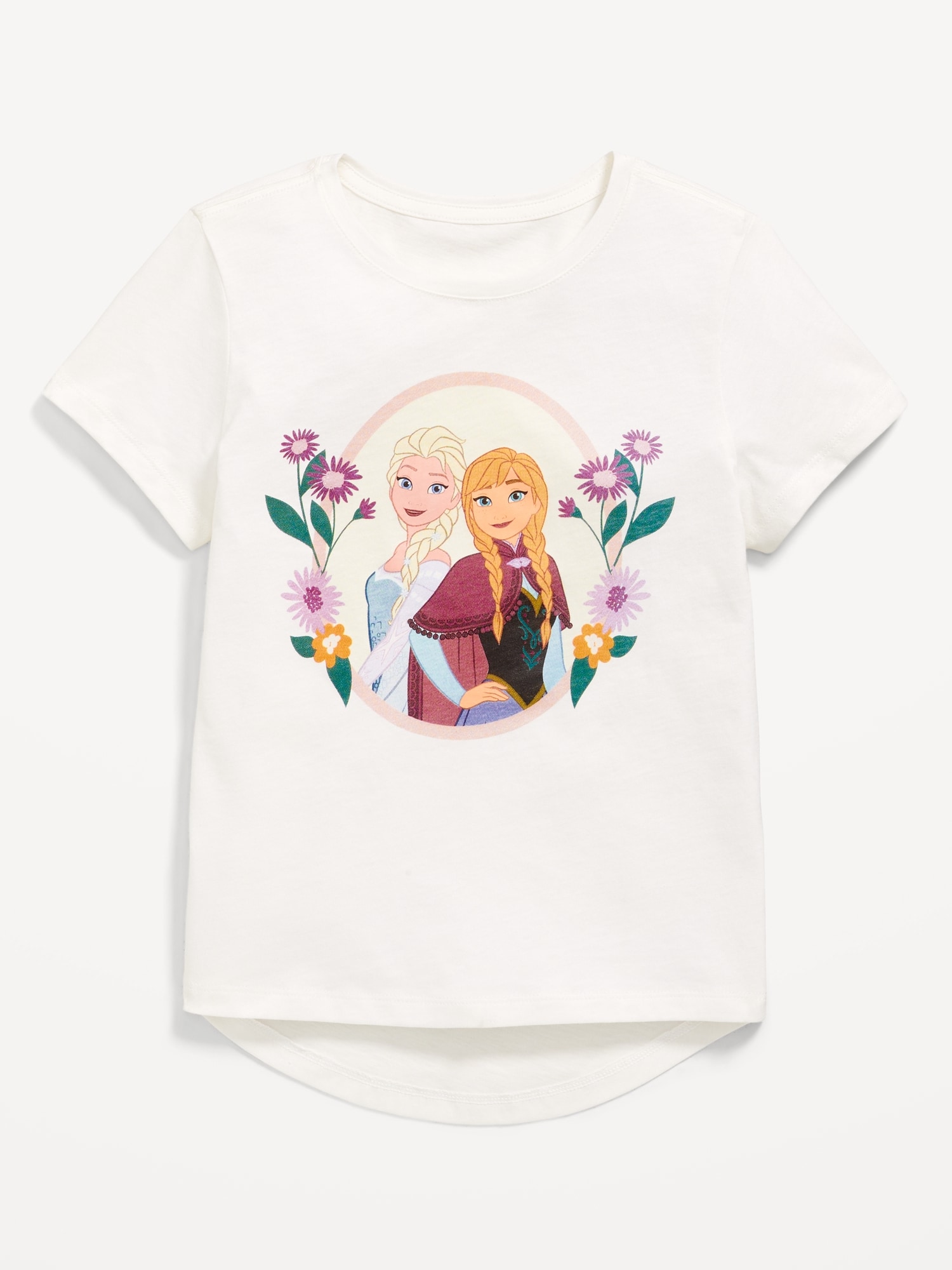 Disney© Frozen Graphic T-Shirt for Girls: crew neck, short sleeves, drop shoulders, licensed graphic, hi-lo hem, ©Disney., available exclusively online and at old navy outlet stores., #763721