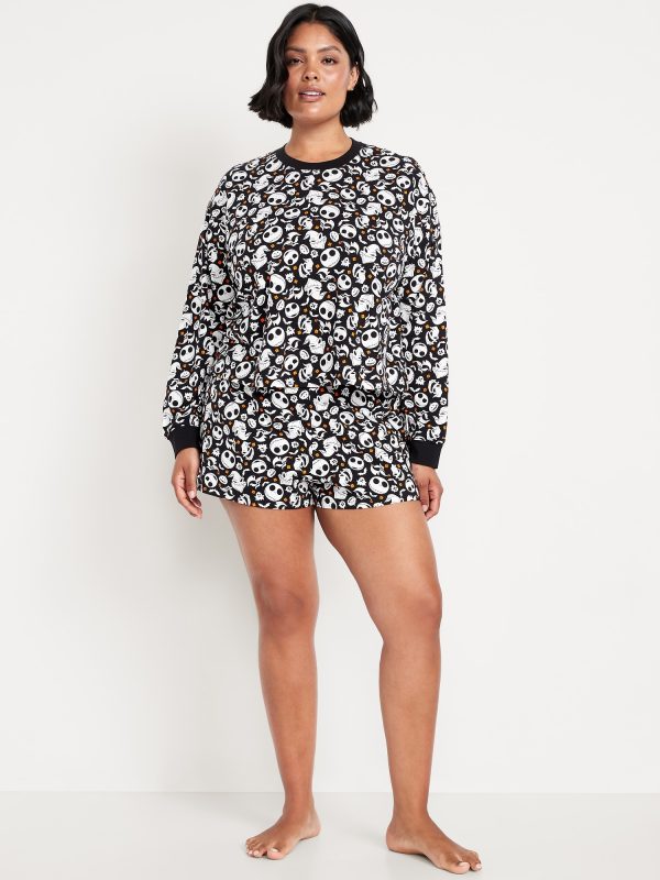 Disney© Halloween Pajama Short Set: set includes sleep top and coordinating shorts, crew neck, long drop-shoulder sleeves, elastic-waist sleep shorts, licensed graphic, © Disney, #804829