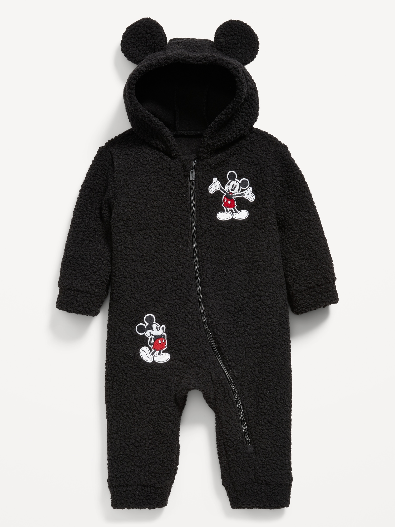 Disney© Mickey Mouse Sherpa Hooded One-Piece for Baby: built-in hood, ears at crown, long sleeves, full length zipper, embroidered licensed graphic, ©Disney., #802599