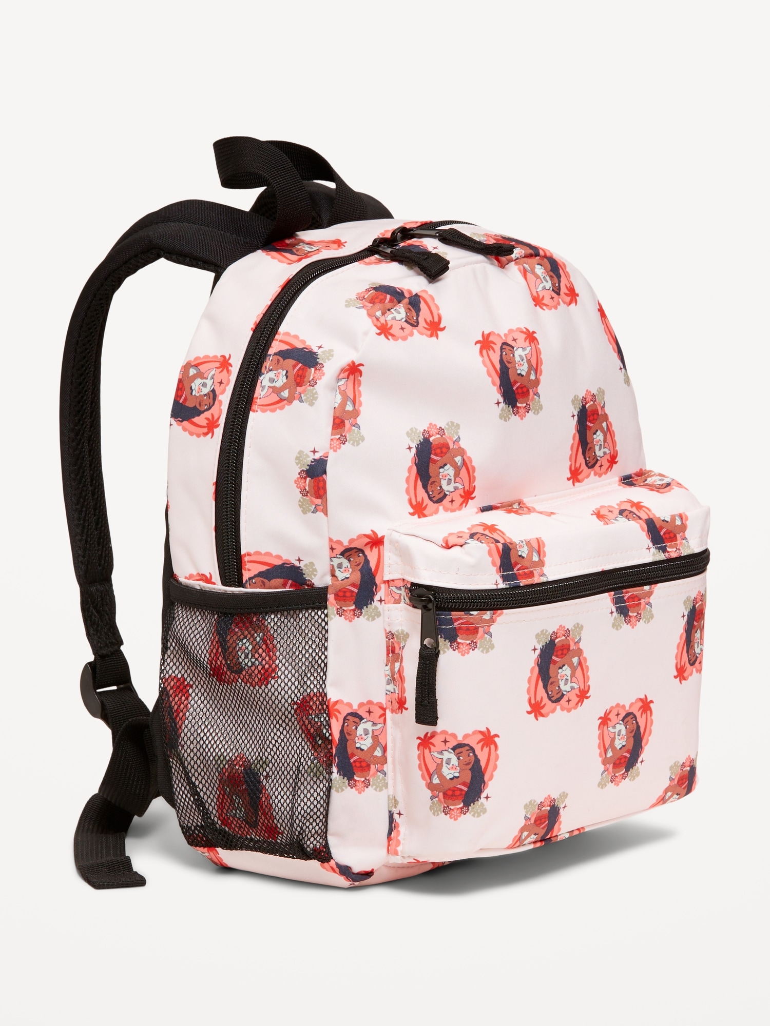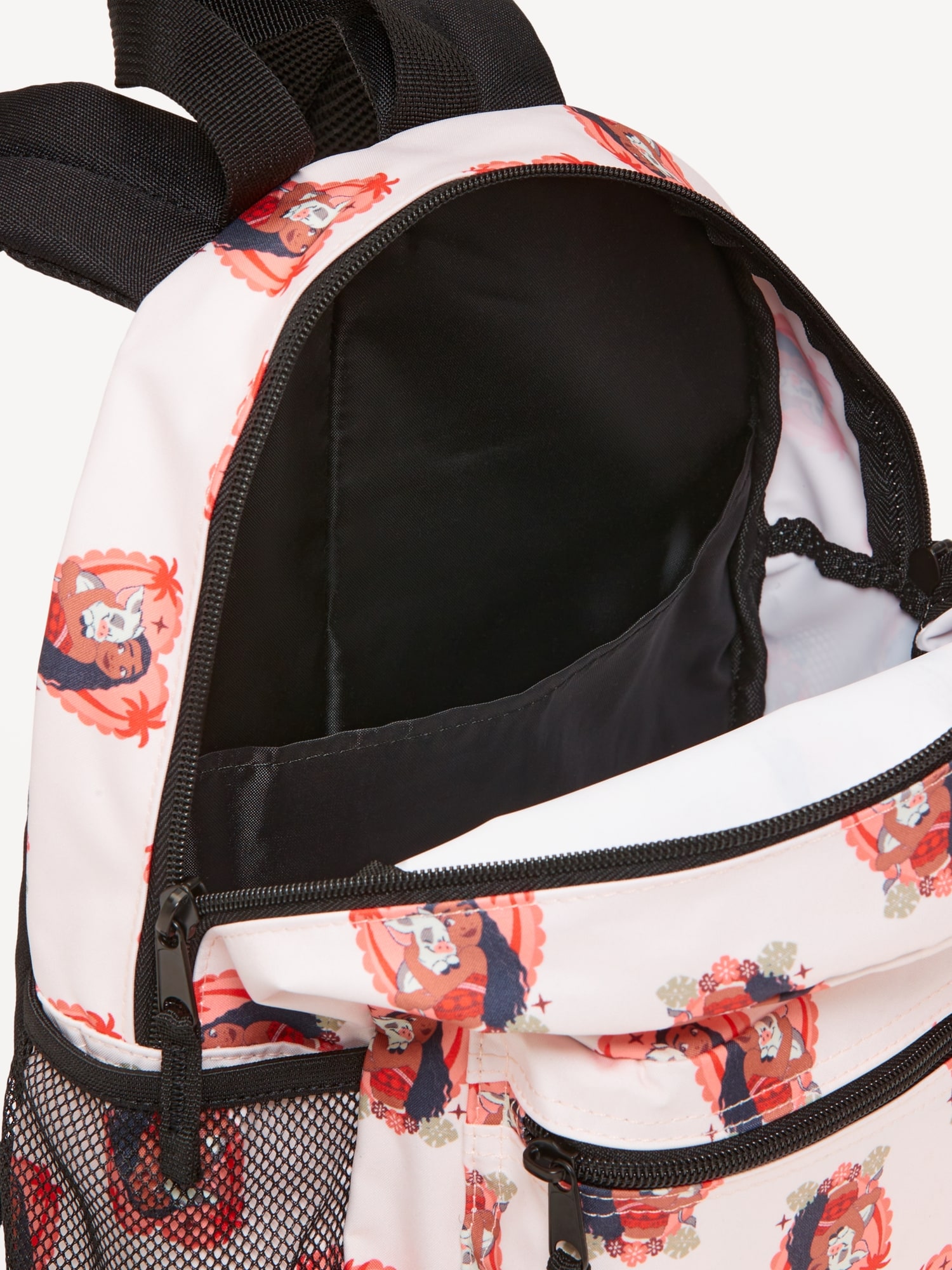 Disney© Moana Canvas Backpack for Girls: zip-top closure, top handle, shoulder straps, exterior zippered pouch compartment, durable stretchy mesh side pouch, licensed graphic, © & ™ Spin Master Ltd., #762296