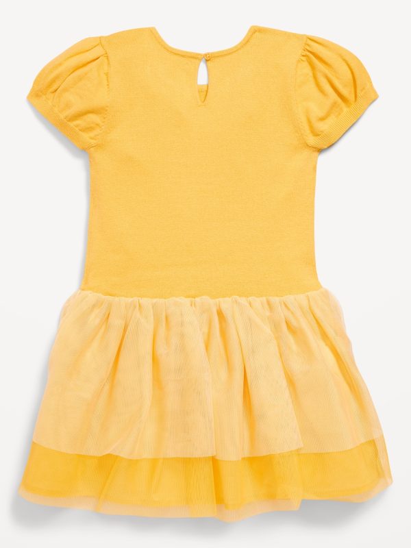 Disney© Short-Sleeve Princess Tutu Dress for Toddler Girls: crew neck, cap sleeves, button-loop closure at nape, seamed waist with encased elastic, overlay at skirt, ©Disney, #766781