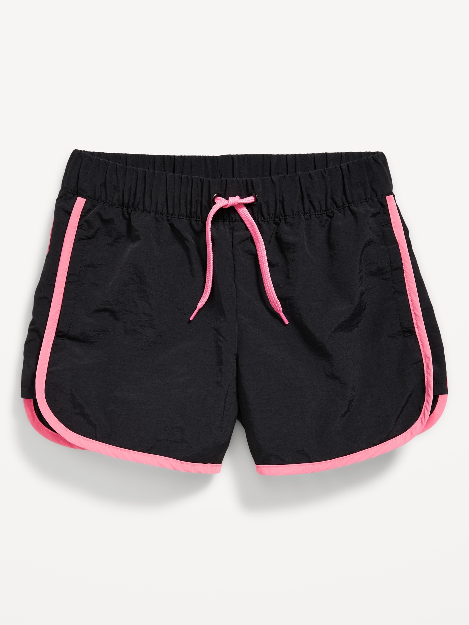 Dolphin-Hem Board Shorts for Girls: elasticized waistband, functional drawstring, on-seam pockets, dolphin hem, #691820
