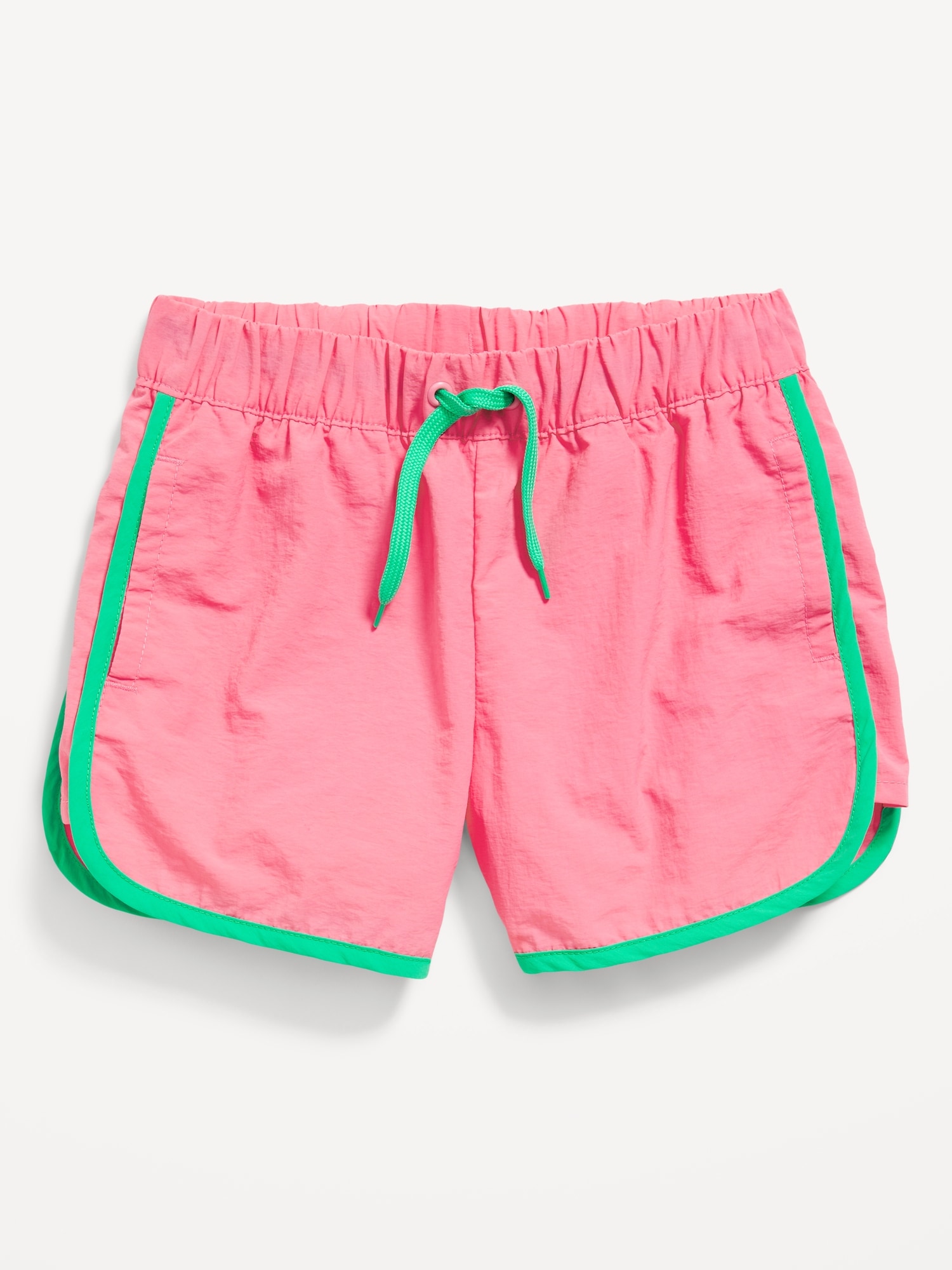 Dolphin-Hem Board Shorts for Girls: elasticized waistband, functional drawstring, on-seam pockets, dolphin hem, #691820