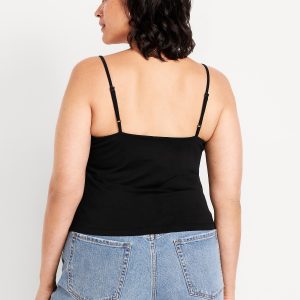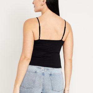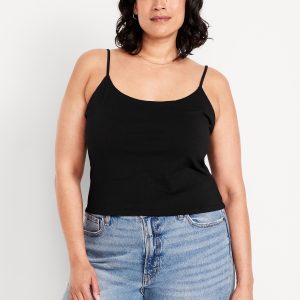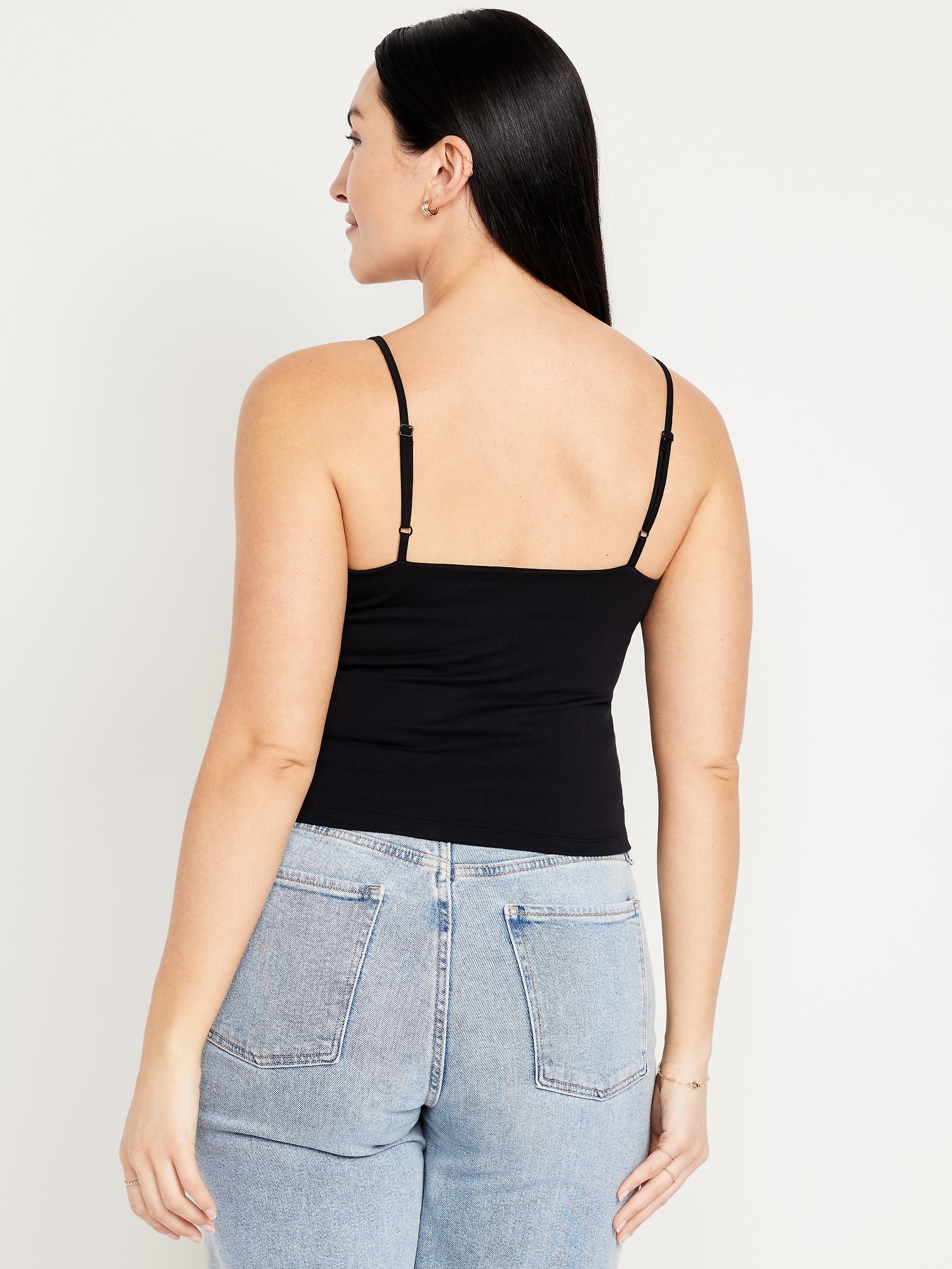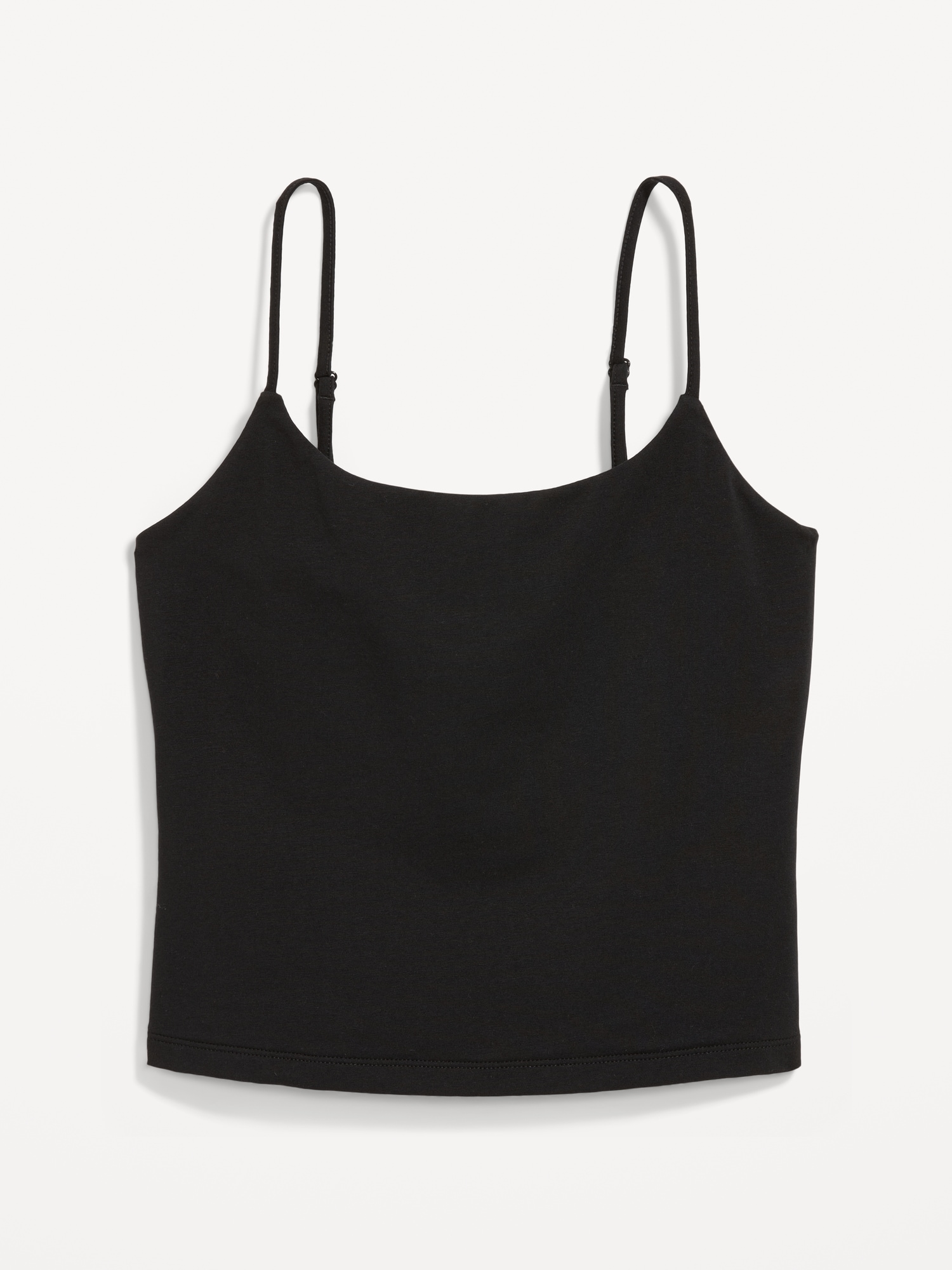 Double-Layer Cropped Cami Top: scoop neck, adjustable spaghetti straps, #747872