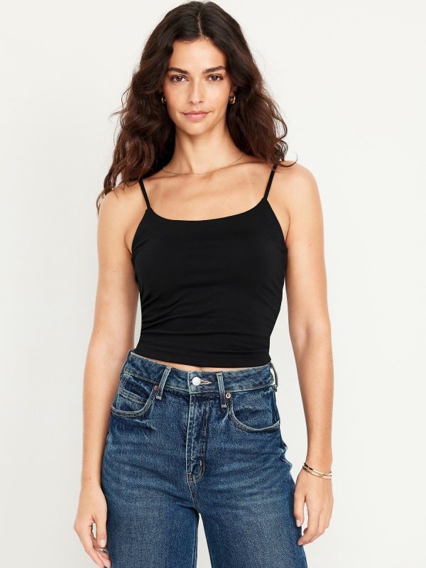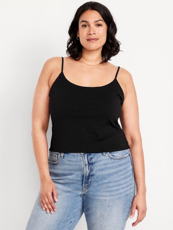 Double-Layer Cropped Cami Top: scoop neck, adjustable spaghetti straps, #747872