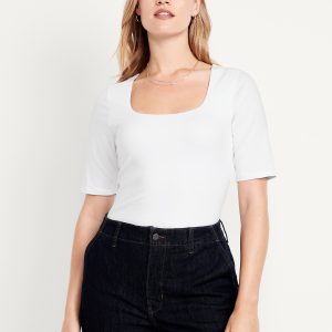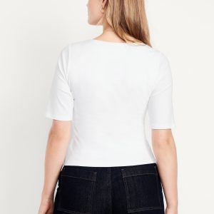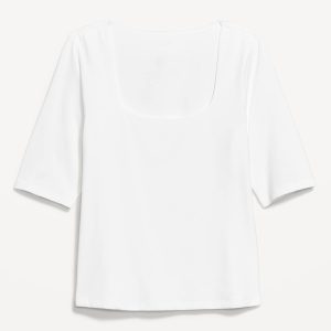 Double-Layer Elbow-Sleeve Scoop-Neck T-Shirt
