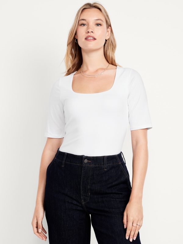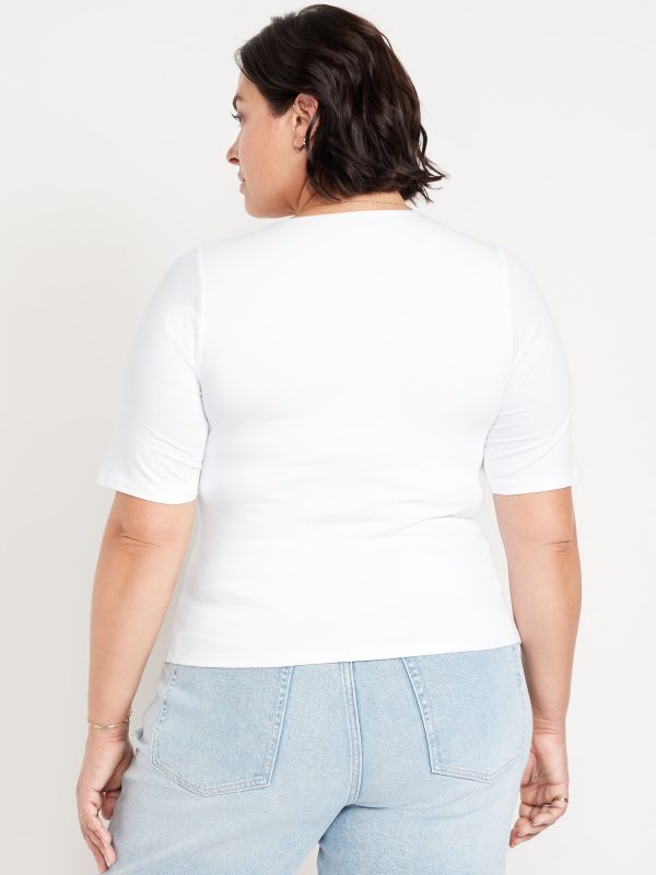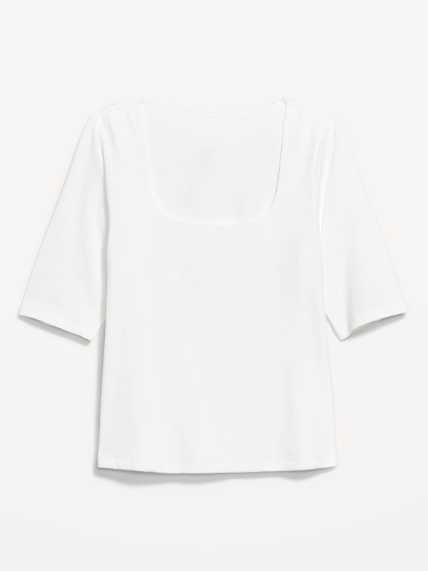Double-Layer Elbow-Sleeve Scoop-Neck T-Shirt