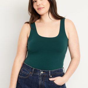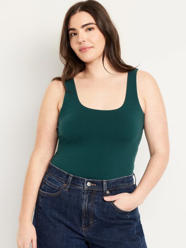 Double-Layer Scoop-Neck Bodysuit: scoop neck, wide straps, snaps at inseam, #683485