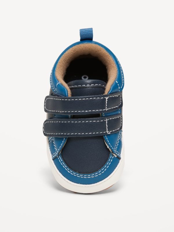Double Secure-Strap Faux-Leather Sneakers for Baby: adhesive secure close straps, cushioned foot bed, gripper dots at outsole, pull tab at heel, #800499