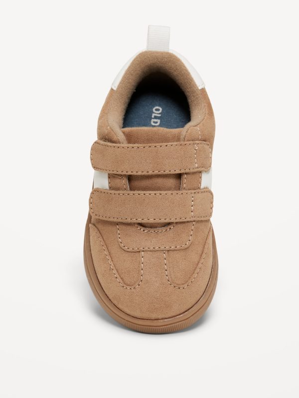 Double Secure-Strap Faux-Suede Sneakers for Toddler Boys: adhesive secure close straps, cushioned foot bed, rubber midsole, pull tab at heel, #804394