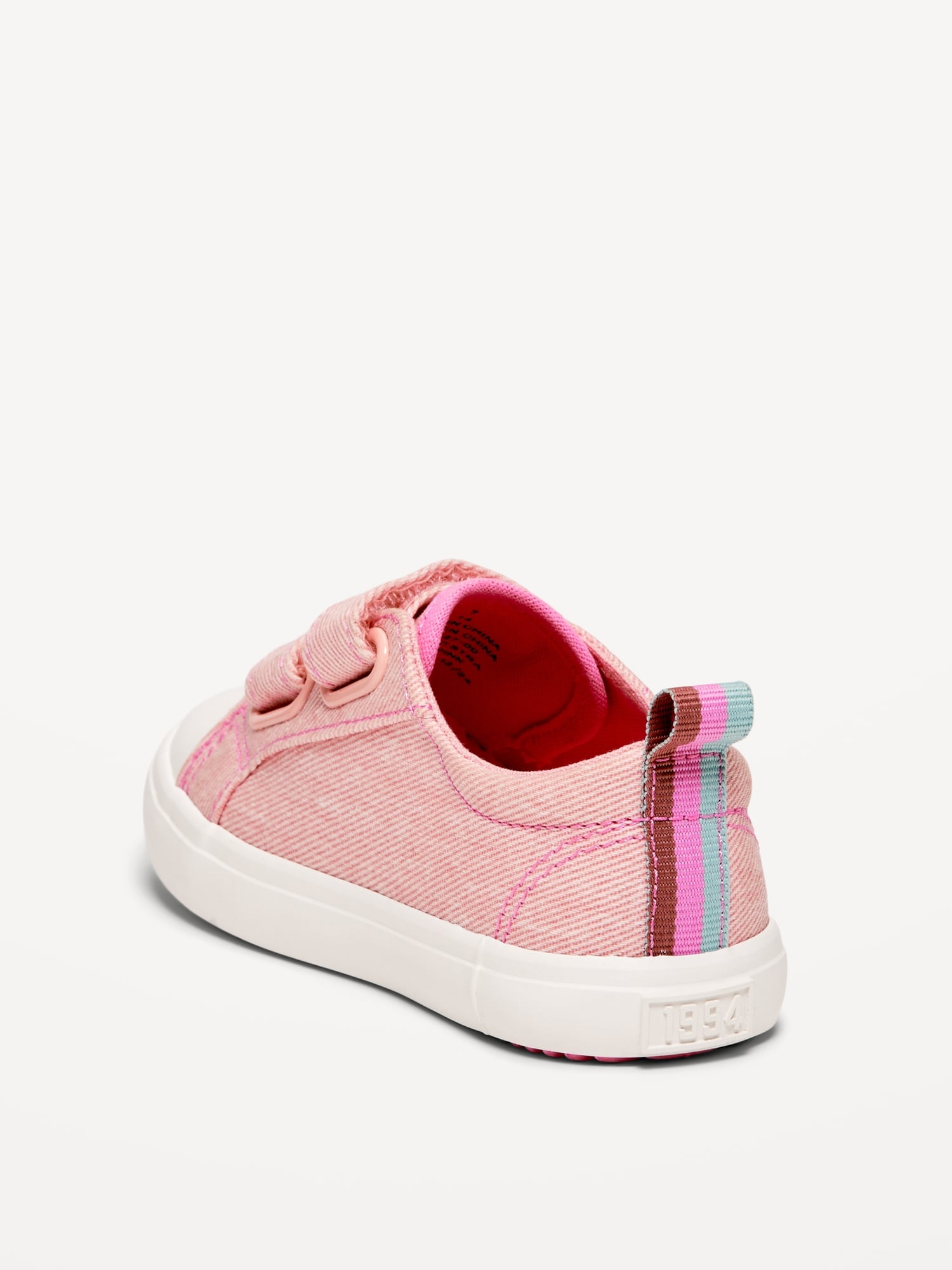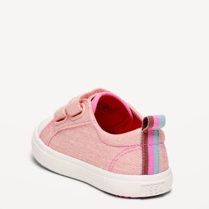 Double Secure-Strap Twill Sneakers for Toddler Girls: adhesive secure close straps, cushioned foot bed, rubber midsole, pull tab at heel, #722185
