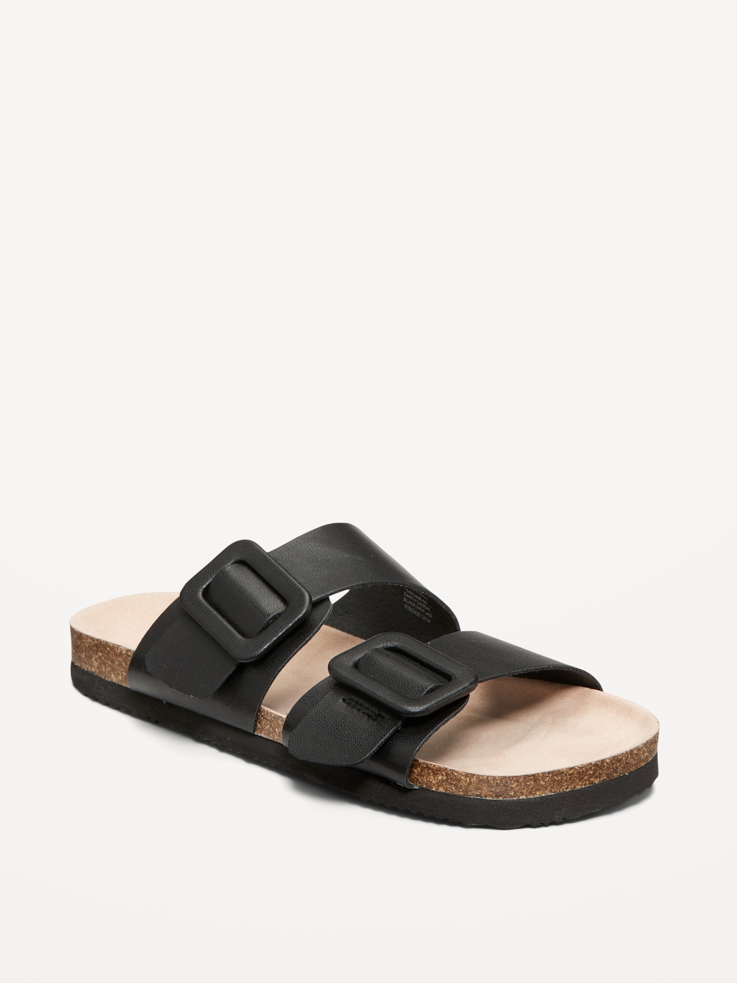 Double-Strap Earth Sandal: faux leather upper, contoured foot bed, easy slide-on style, #663898