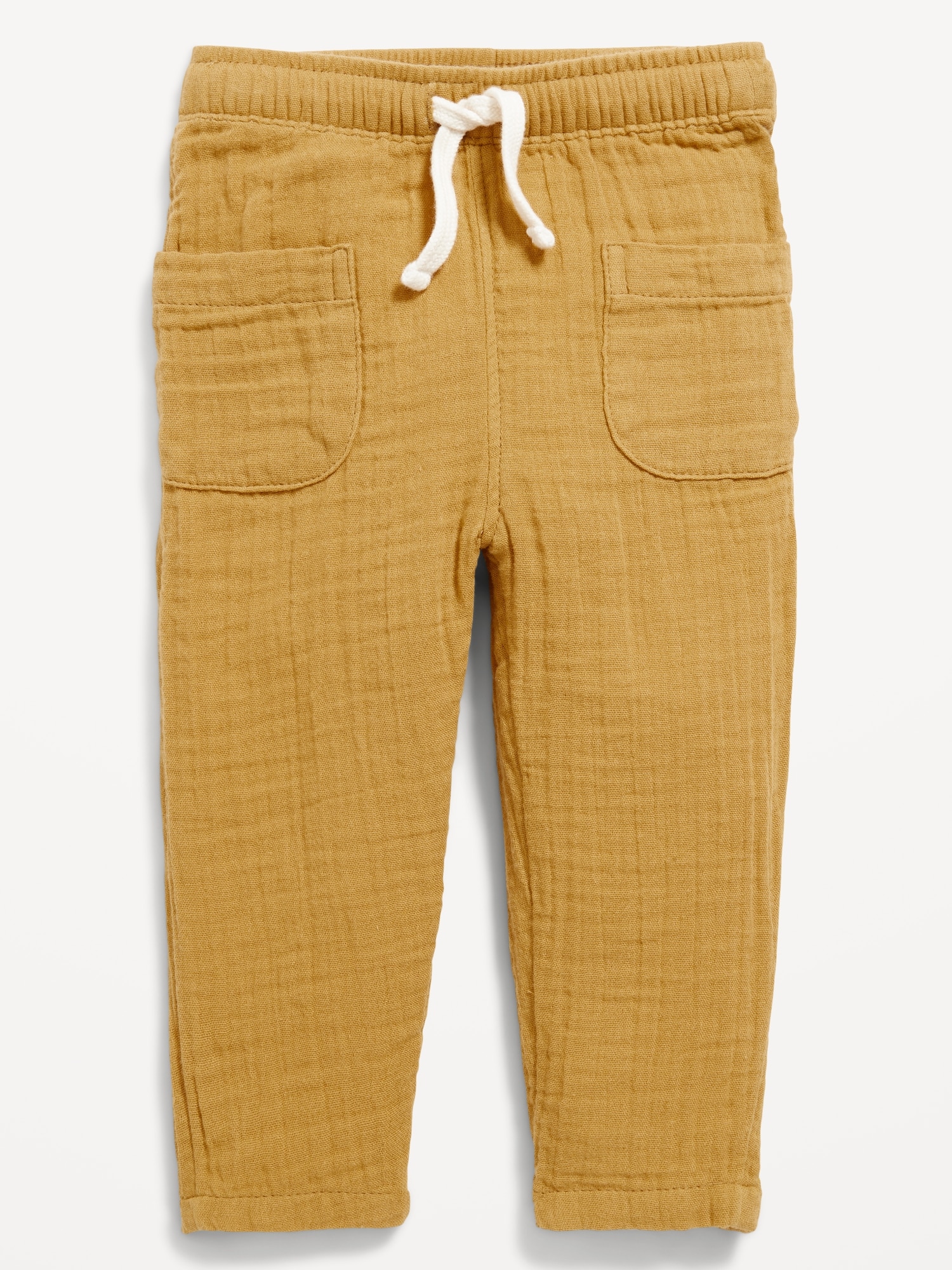 Double-Weave Pants for Baby: elasticized waistband, functional drawstring, side patch pockets, online exclusive, #761915