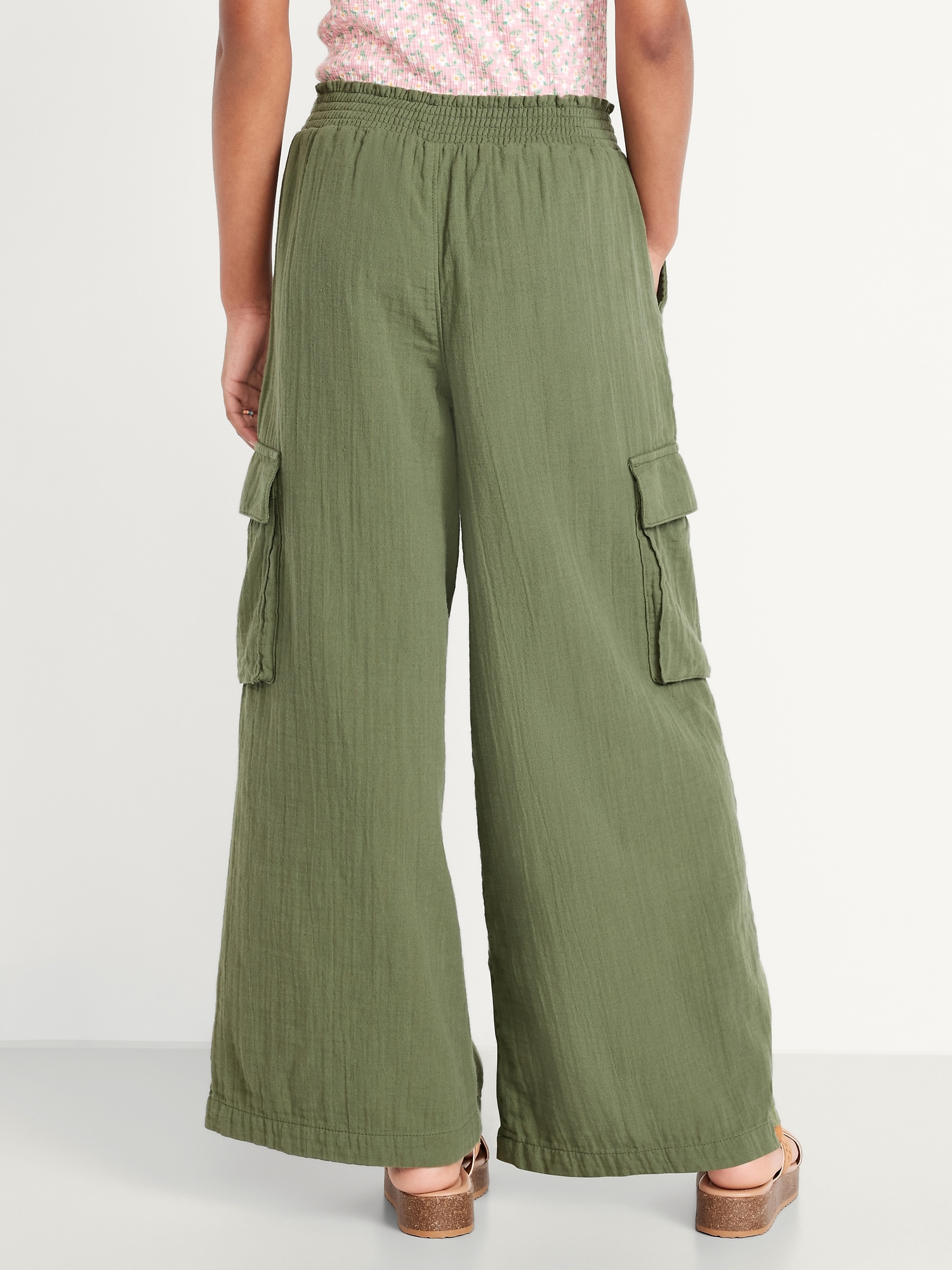 Double-Weave Wide-Leg Cargo Pants for Girls: elasticized waistband, diagonal on-seam pockets, flap cargo pockets, wide leg, #767126