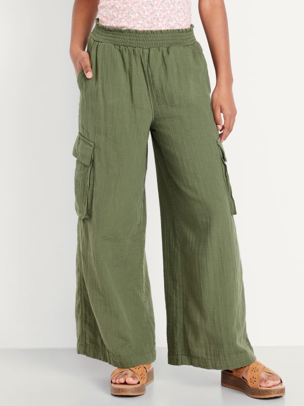 Double-Weave Wide-Leg Cargo Pants for Girls