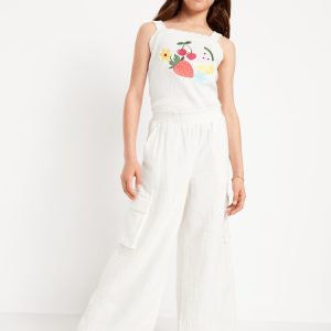 Double-Weave Wide-Leg Cargo Pants for Girls