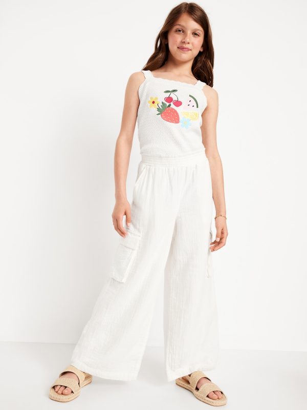 Double-Weave Wide-Leg Cargo Pants for Girls