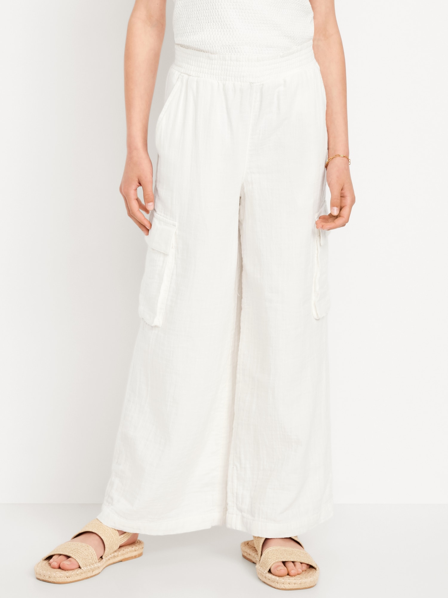 Double-Weave Wide-Leg Cargo Pants for Girls