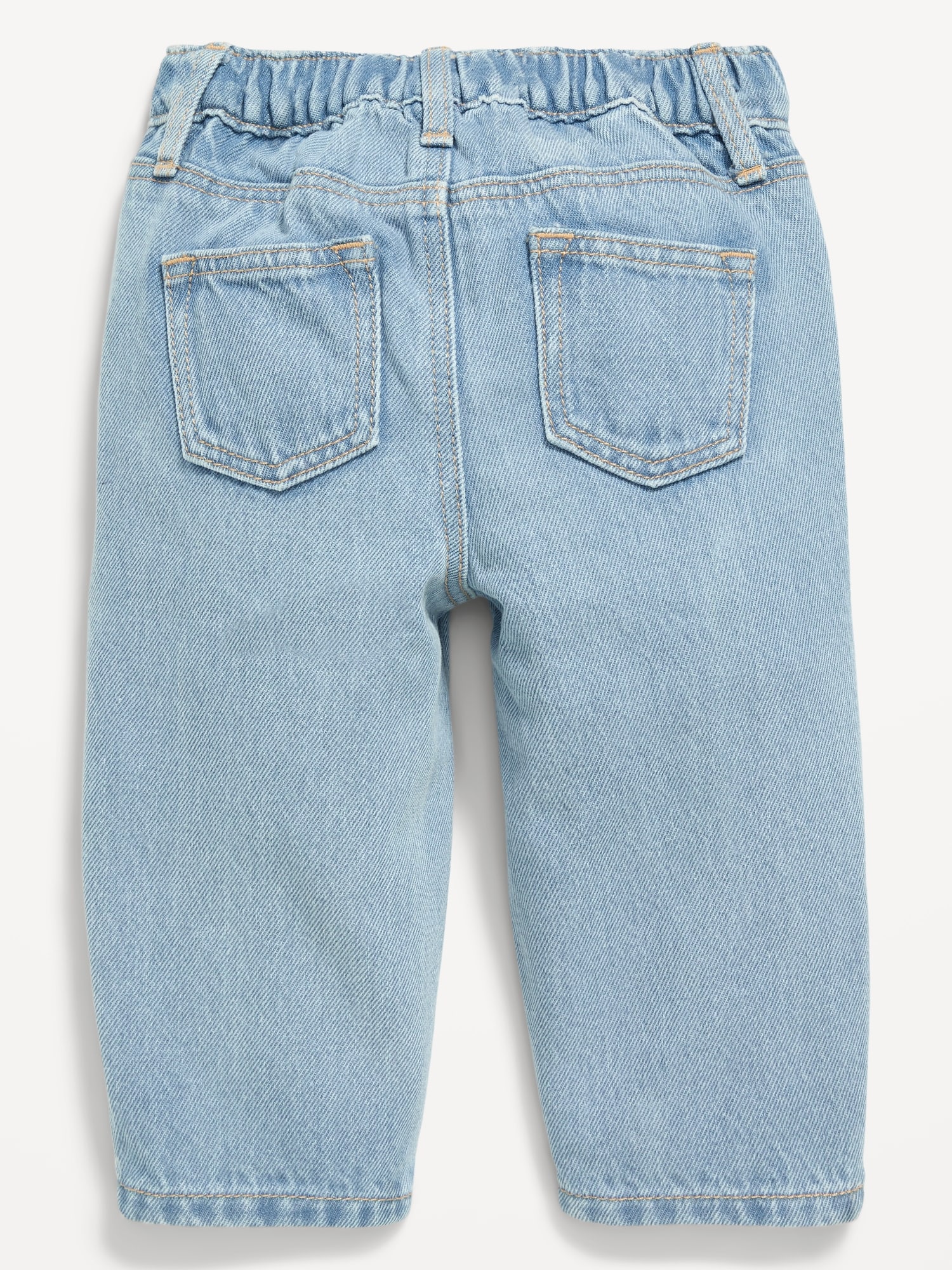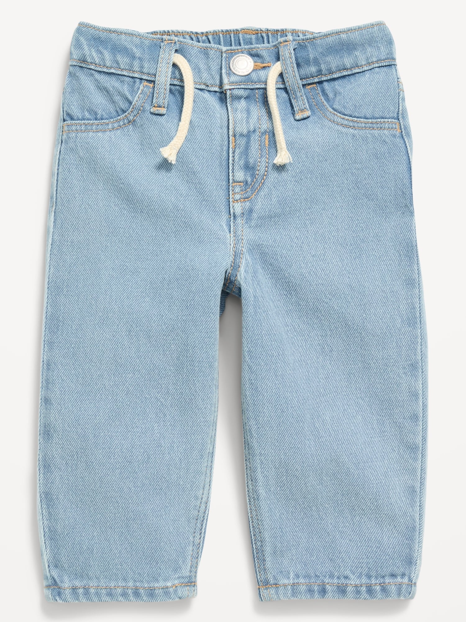 Drawstring Barrel-Leg Jeans for Baby: elasticized waistband, snap-button closure, nonfunctional drawstring, faux fly, decorative scoop pockets, patch pockets at back, barrel leg, #806247