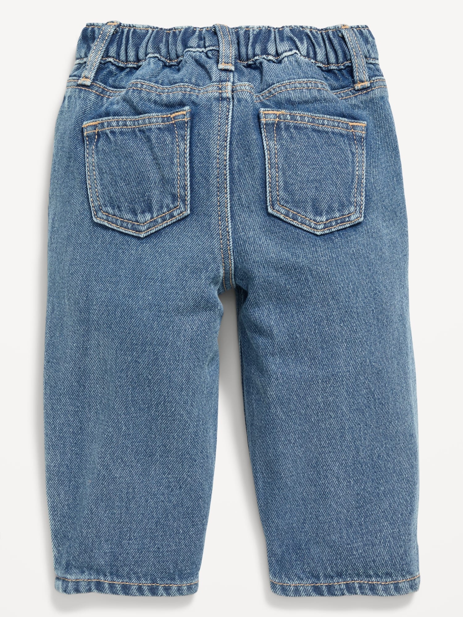 Drawstring Barrel-Leg Jeans for Baby: elasticized waistband, snap-button closure, nonfunctional drawstring, faux fly, decorative scoop pockets, patch pockets at back, barrel leg, #806247