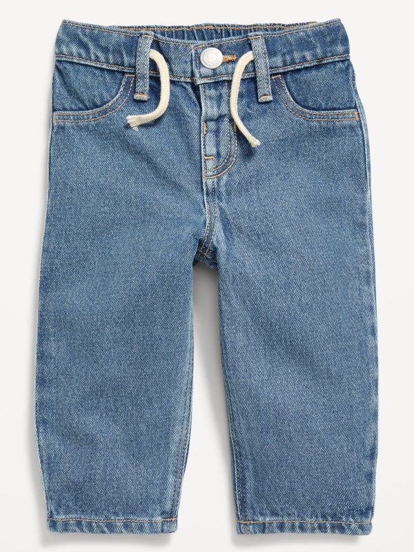 Drawstring Barrel-Leg Jeans for Baby: elasticized waistband, snap-button closure, nonfunctional drawstring, faux fly, decorative scoop pockets, patch pockets at back, barrel leg, #806247