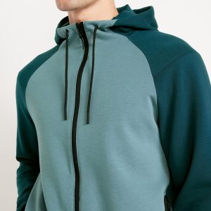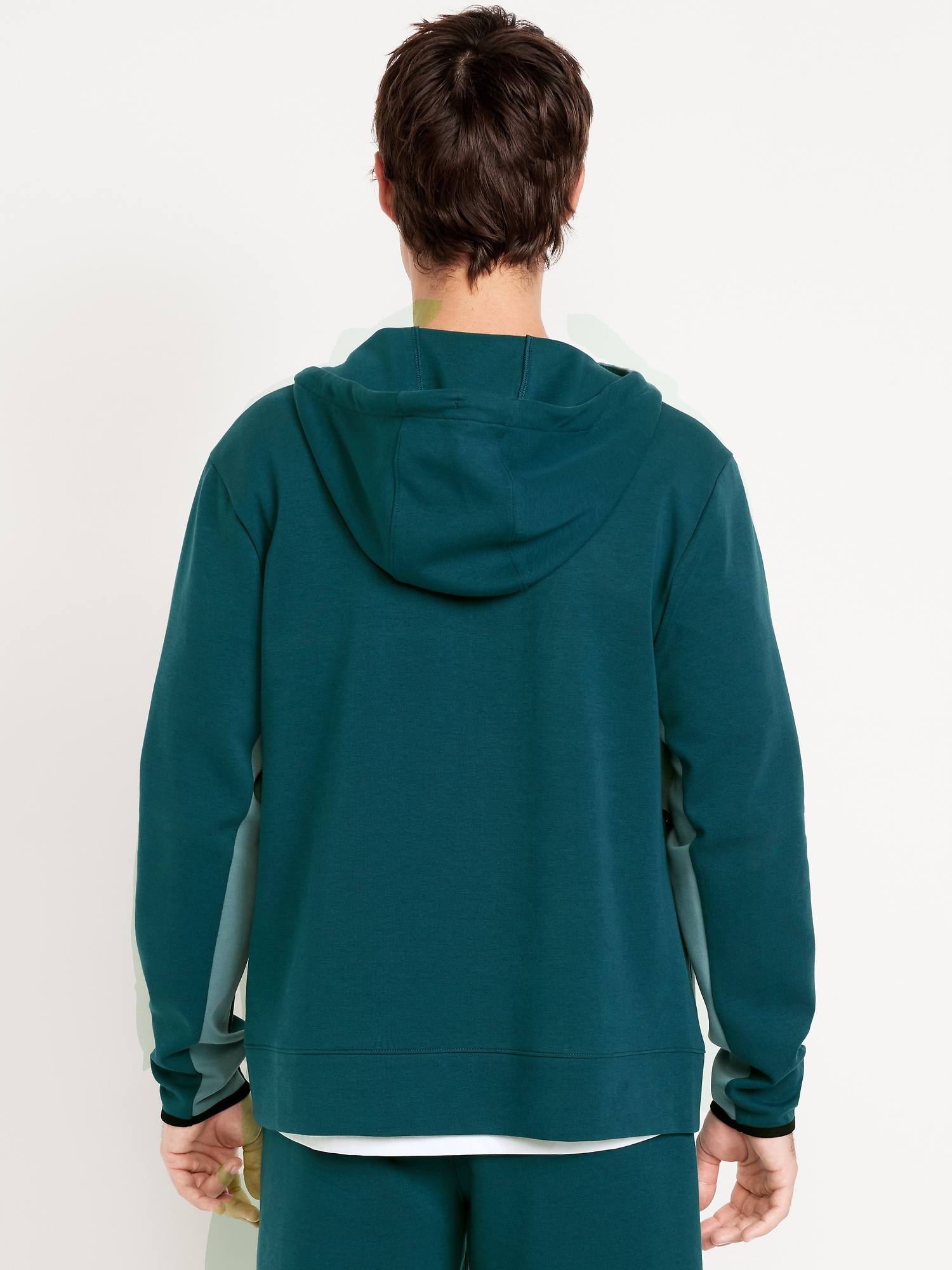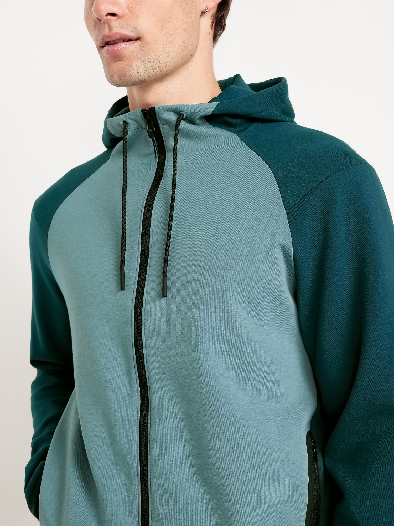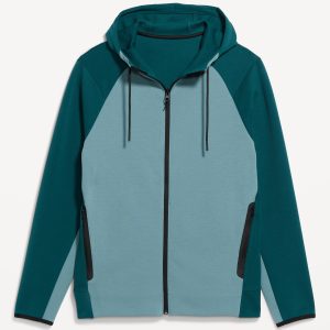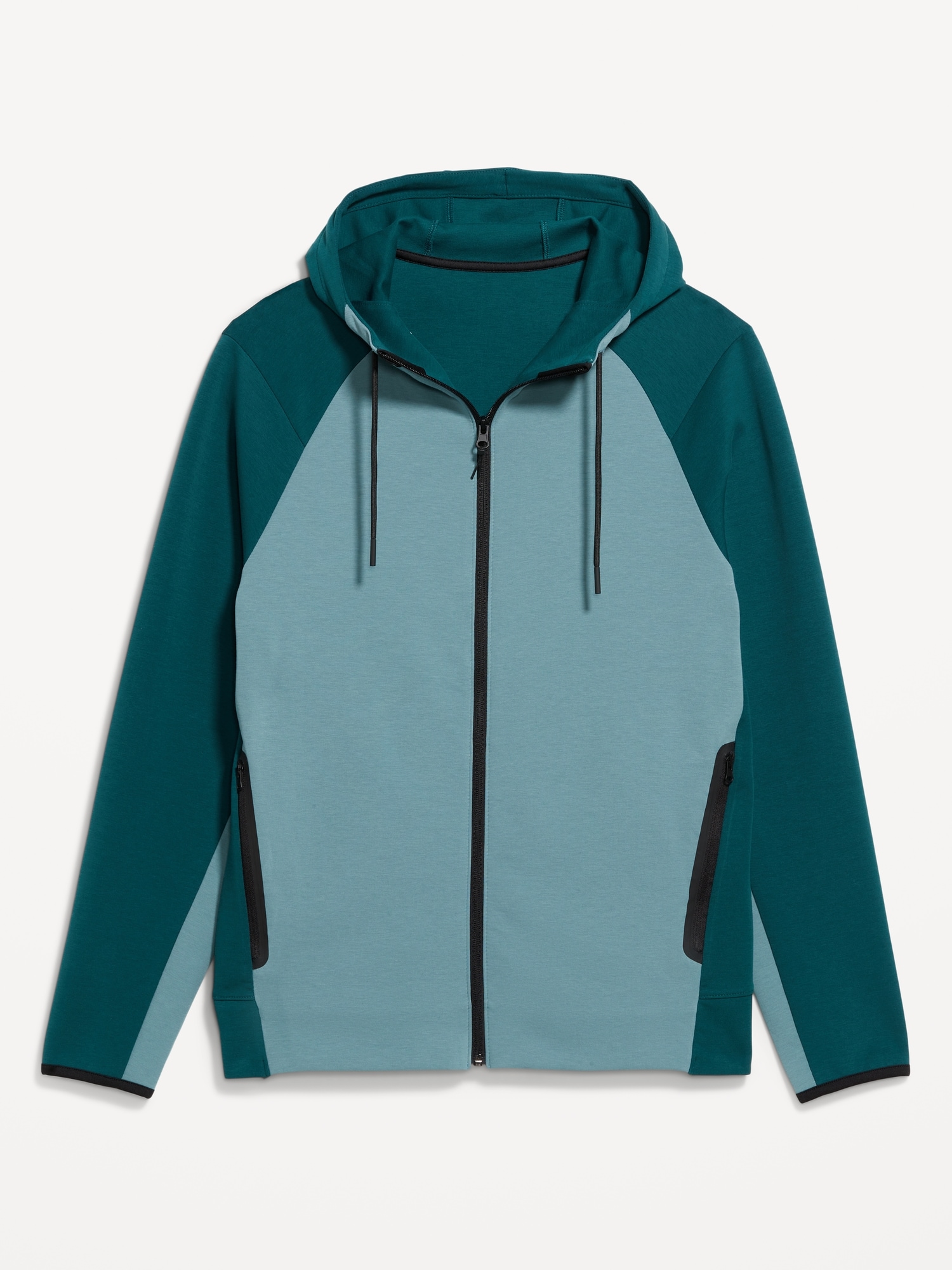 Dynamic Fleece 4.0 Color-Block Full Zip: Featuring Dynamic Fleece. Soft, smooth fleece plus made-to-move stretch.drawstring hood, long sleeves, full zipper, bonded pockets, hidden zip stash pocket at right, breathable, four-way stretch, #488688