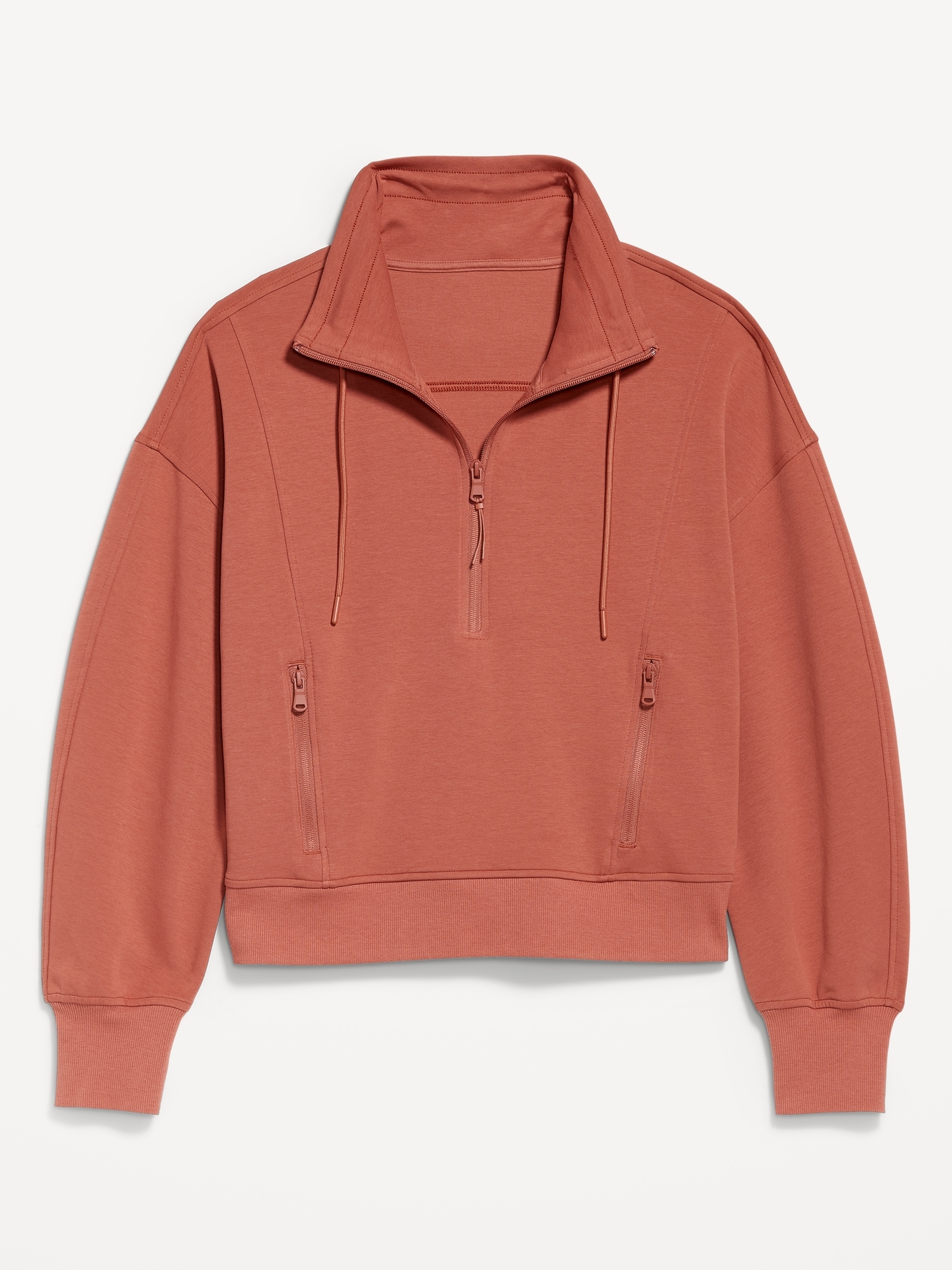 Dynamic Fleece Half-Zip Sweatshirt: Featuring Dynamic Fleece. Soft, smooth fleece plus made-to-move stretch.drawstring funnel neck, long sleeves, zip pockets, pullover style, #784417