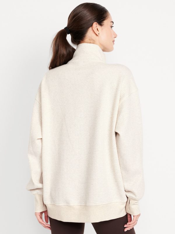 Dynamic Fleece Oversized Textured Tunic Sweatshirt: Featuring Dynamic Fleece. Soft, smooth fleece plus made-to-move stretch.spread collar, drop-shoulder sleeves, half-zip front, vertical welt pockets, rib-knit trim, breathable, #784473