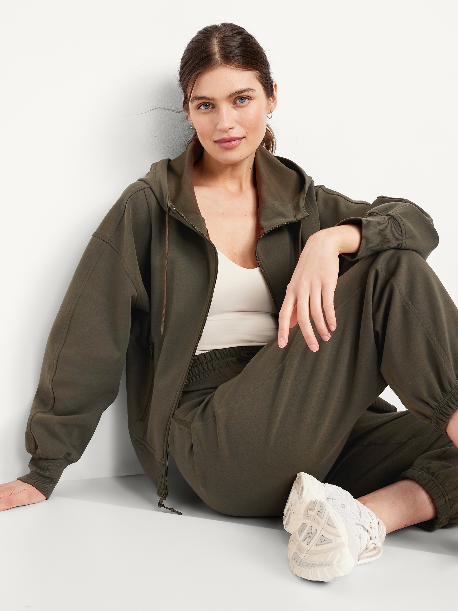 Dynamic Fleece Oversized Zip Hoodie Sweatshirt: Featuring Dynamic Fleece. Soft, smooth fleece plus made-to-move stretch.drawstring hood, long sleeves, full-zip front, front zip pockets, #784468