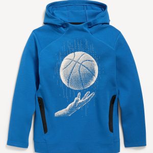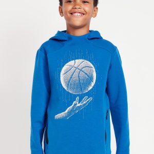 Dynamic Fleece Pullover Hoodie for Boys: Made to keep up with all their shenanigans.built-in hood, long sleeves, side zippered pockets, #505457