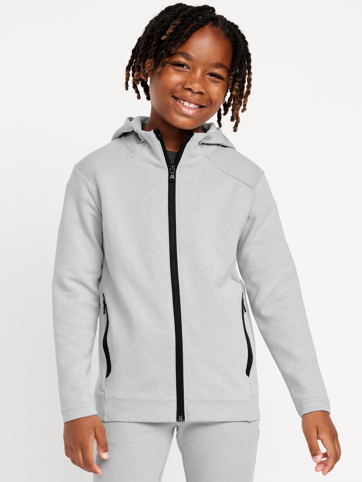 Dynamic Fleece Zip-Front Hoodie for Boys: Made to keep up with all their shenanigans.built-in hood, long sleeves, vertical zippered chest pocket at left, light-reflecting trim, hand-warming pockets, banded hem, full-length zip front, online exclusive, #738695