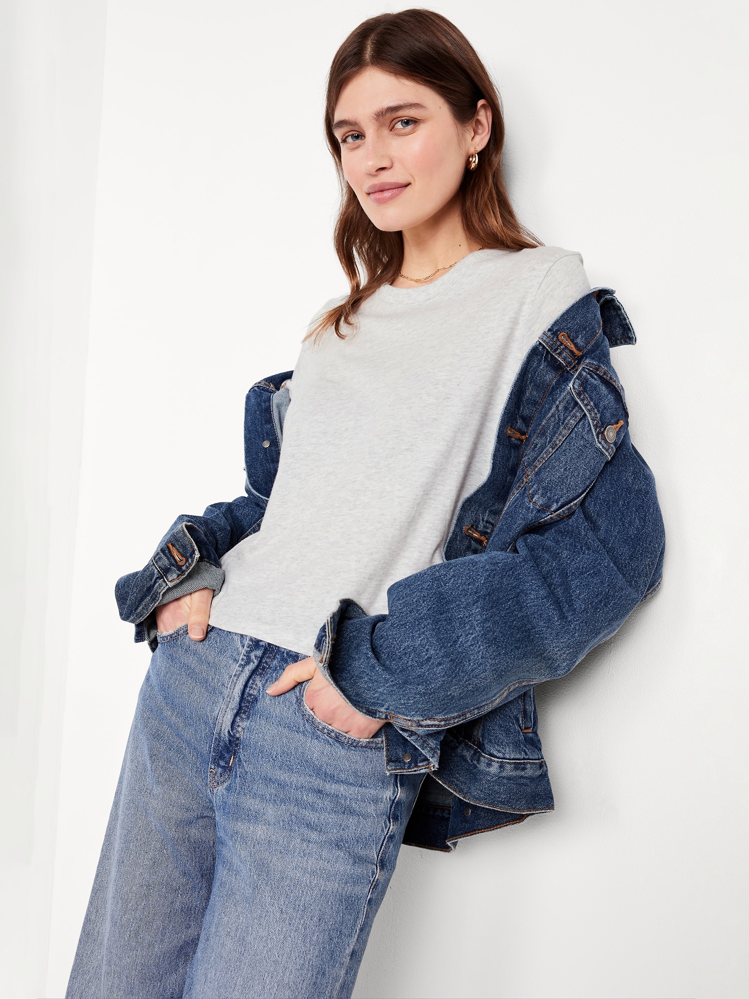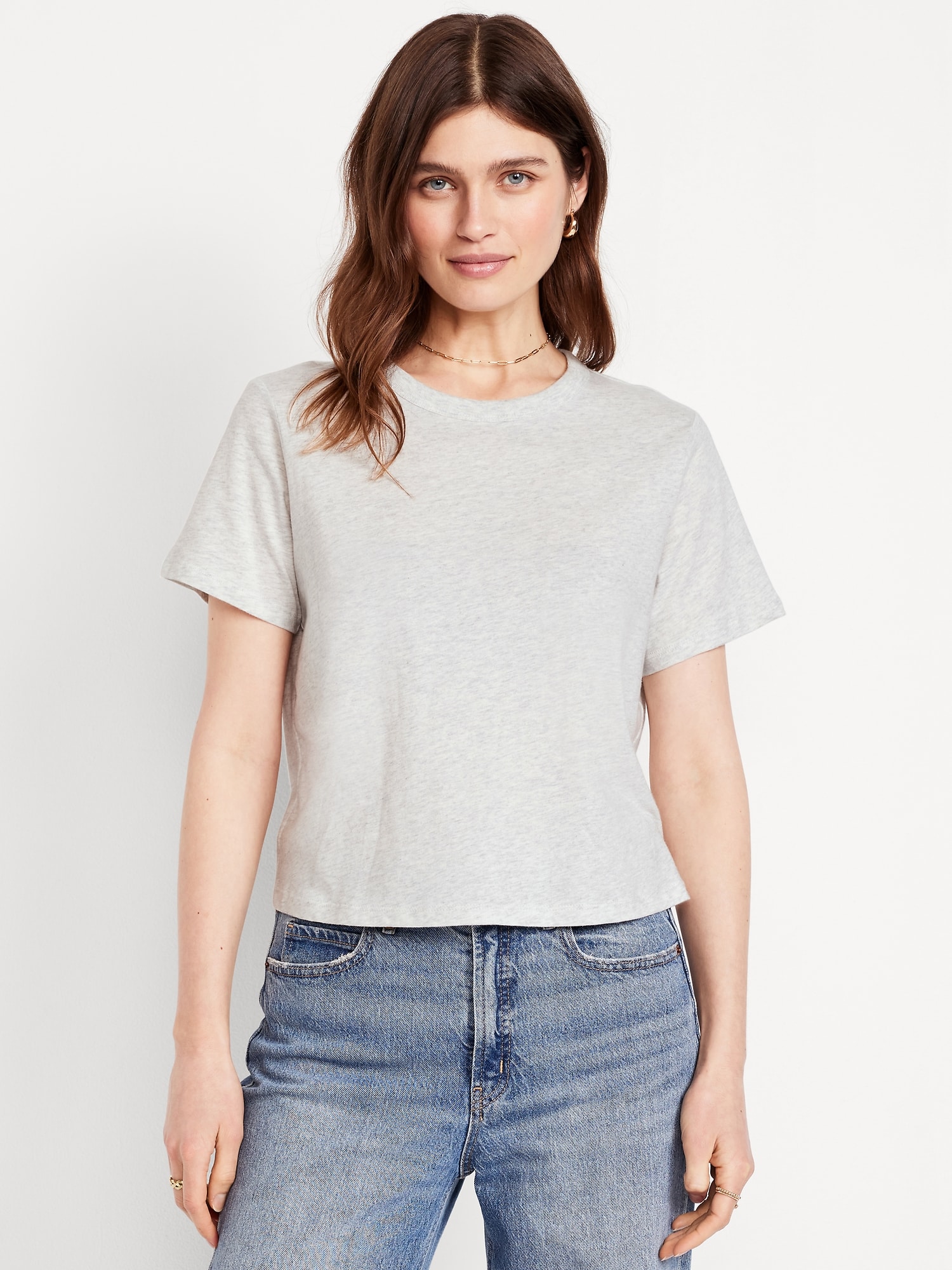 EveryWear Crew-Neck Crop T-Shirt: Our EveryWear T-shirts are super-soft, with a comfortable, relaxed fit. Wear ’em with everything.rib-knit crew neck, short sleeves, #715711