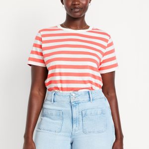 EveryWear Crew-Neck Striped T-Shirt: Our EveryWear T-shirts are super-soft, with a comfortable, relaxed fit. Wear ’em with everything., rib-knit crew neck, short sleeves, floral print, #811467