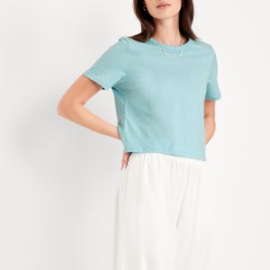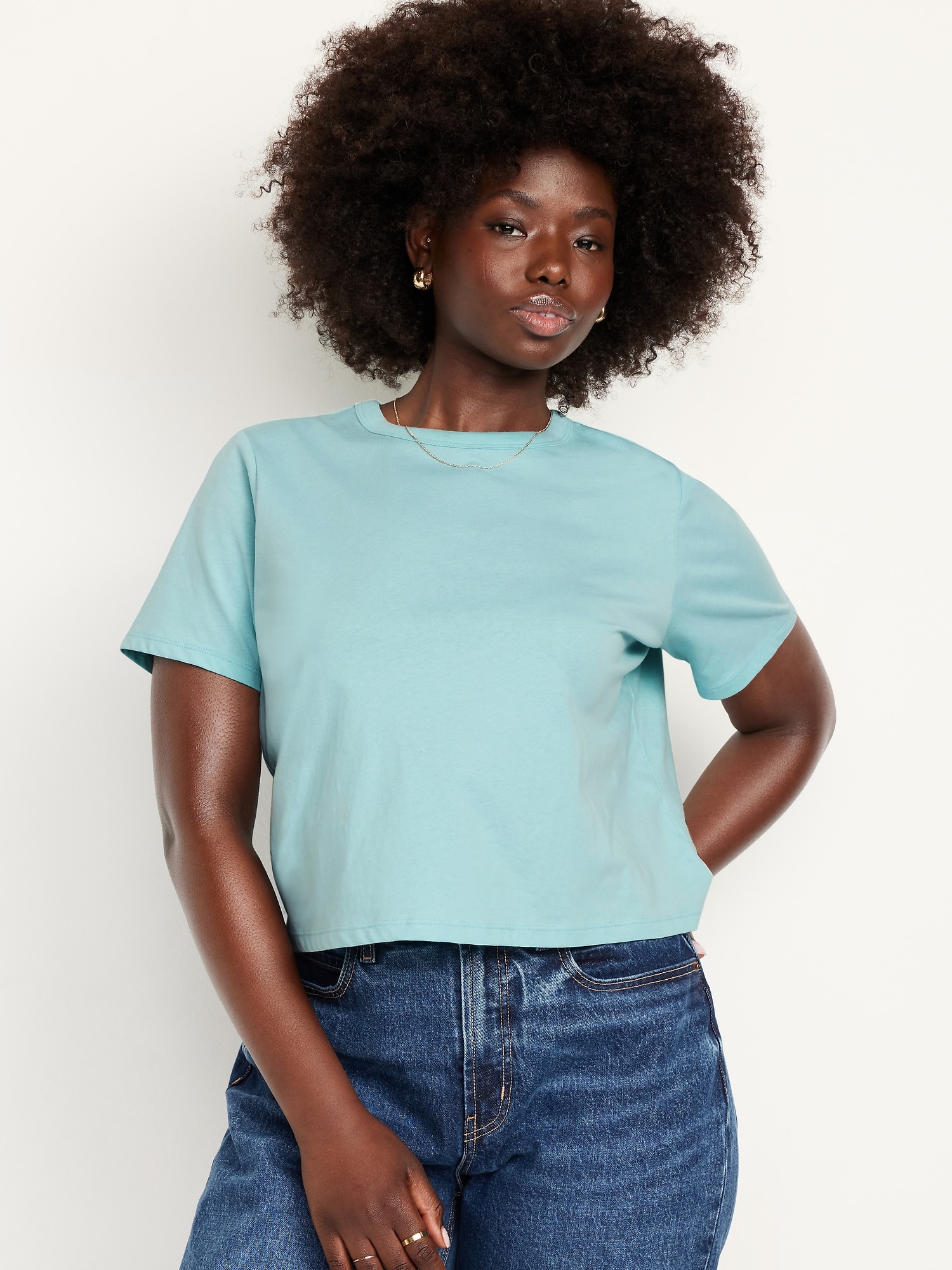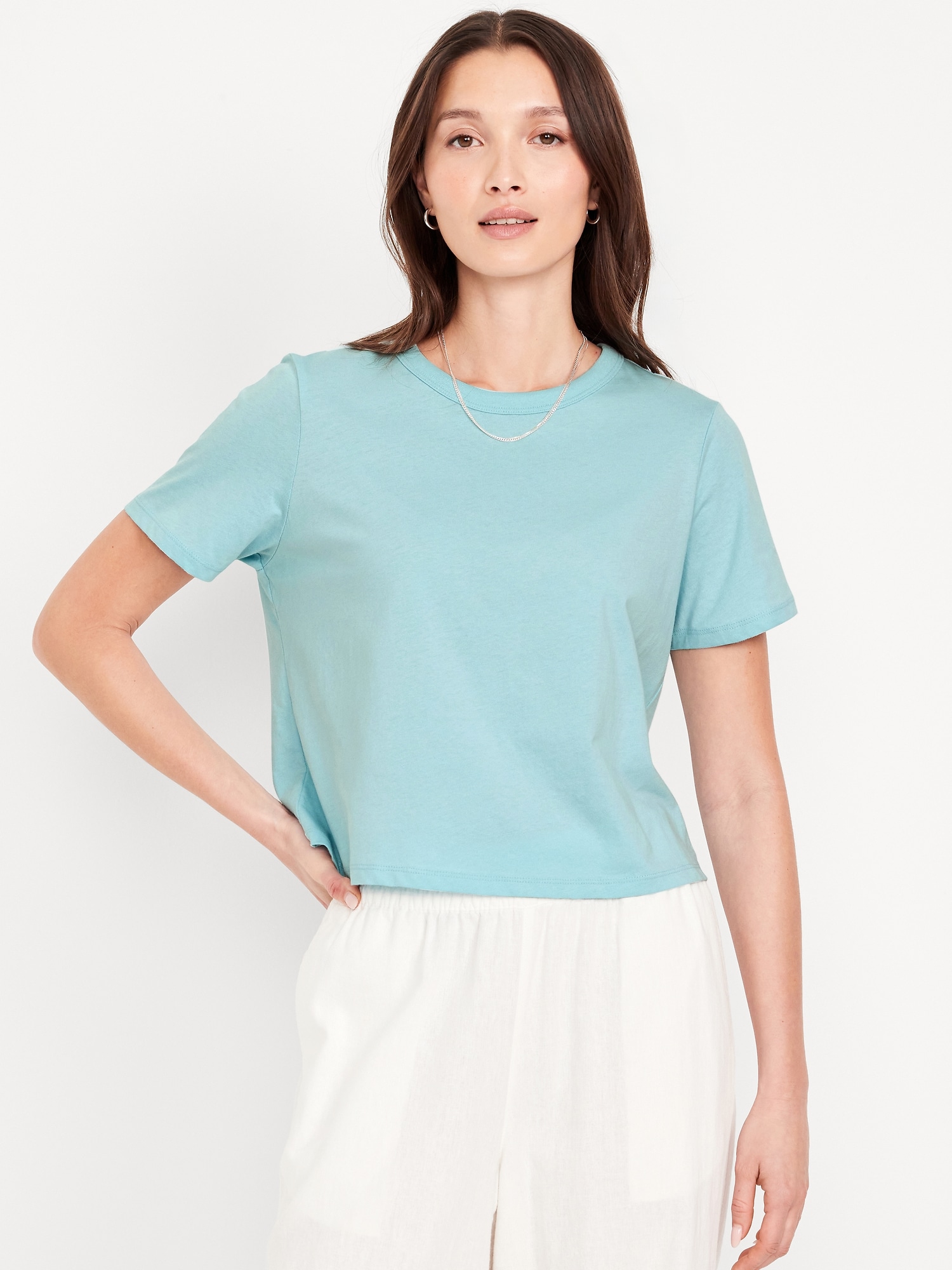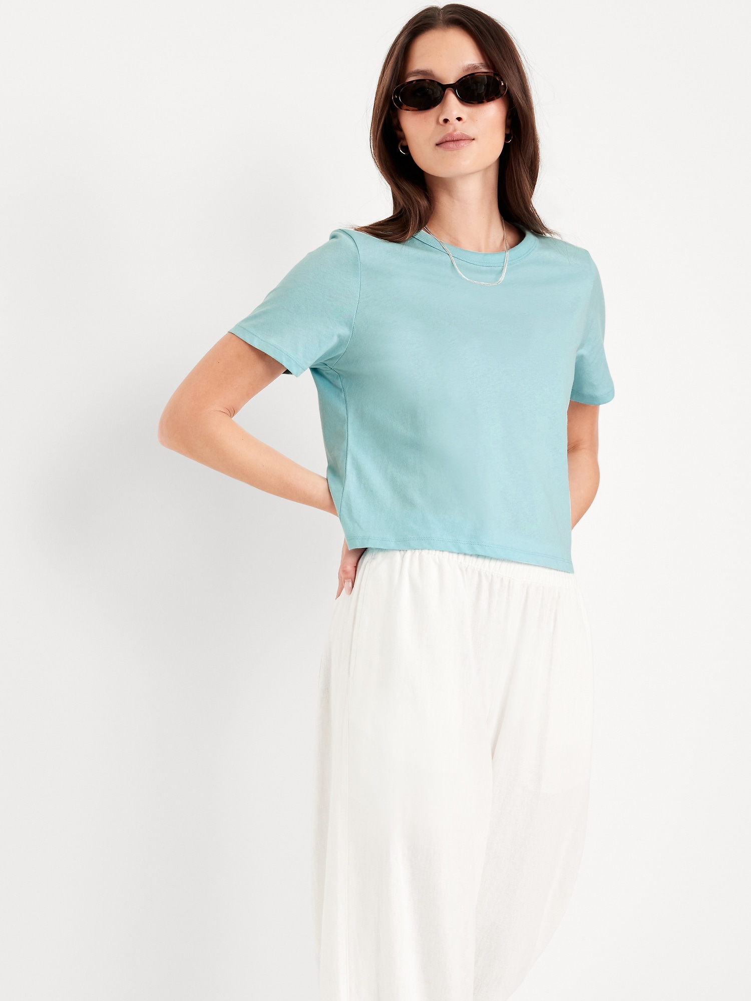EveryWear Crop T-Shirt: Our EveryWear T-shirts are super-soft, with a comfortable, relaxed fit. Wear ’em with everything.rib-knit crew neck, short sleeves, #715711