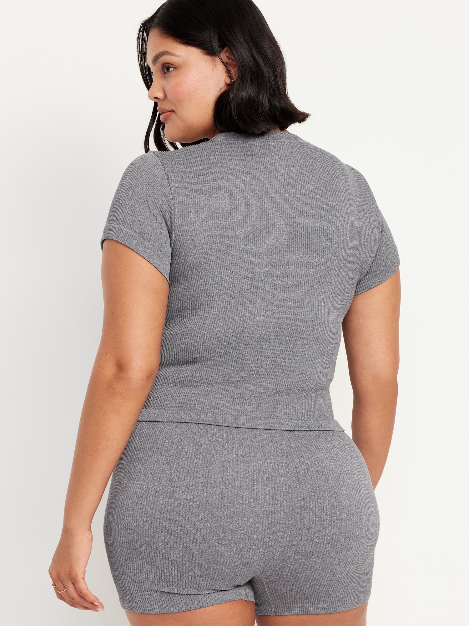 Exhale Seamless Fitted Rib T-Shirt: Ribbed nylon with incredible stretch and softness.crew neck, short sleeves, go-dry wicks moisture, #892256