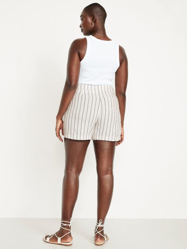 Extra High-Waisted Linen-Blend Taylor Trouser Shorts — 5-inch inseam: extra high adjustable waist, hook-and-bar closure, belt loops, hip pockets, functional back welt pocket, pleated front, #748111
